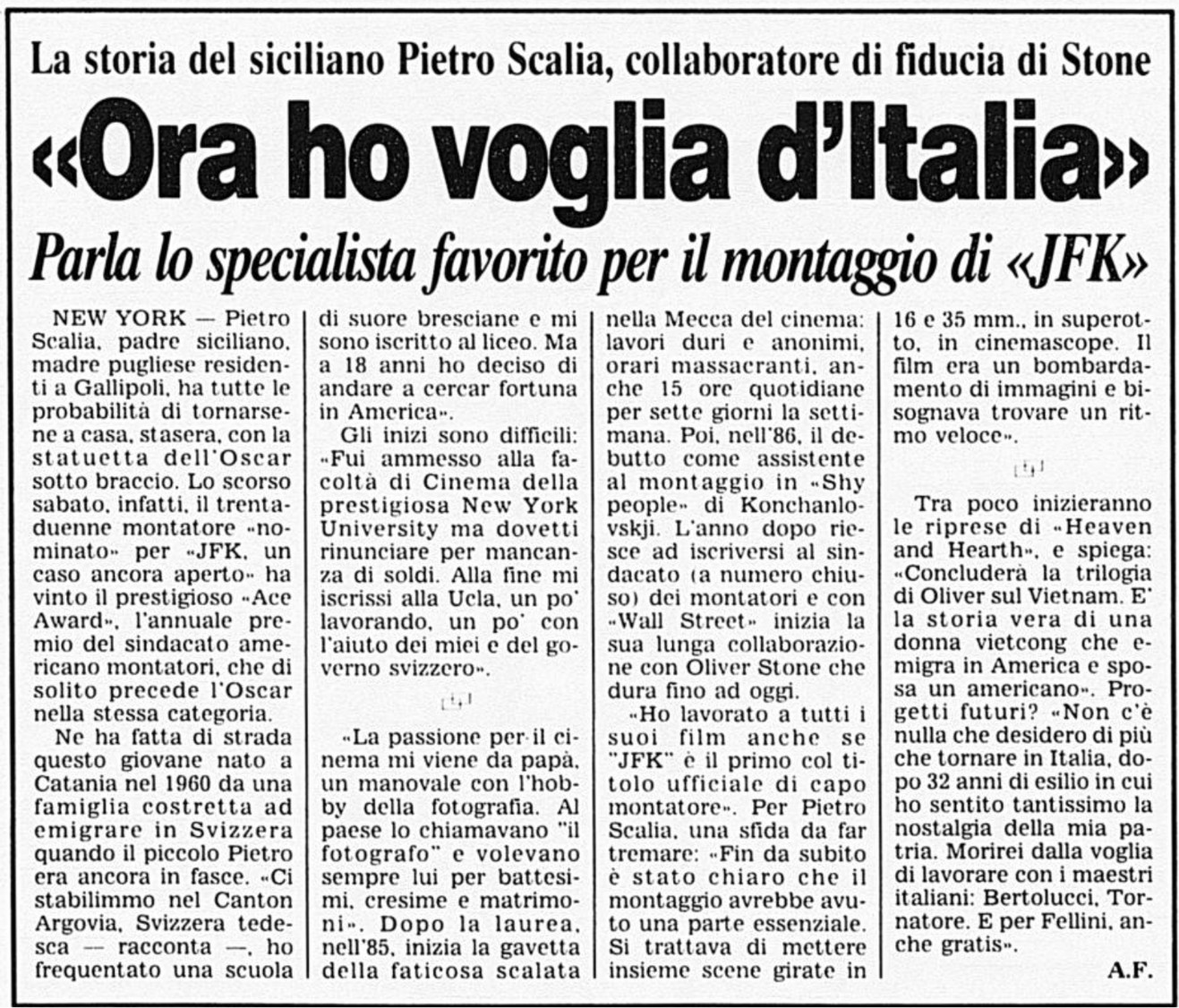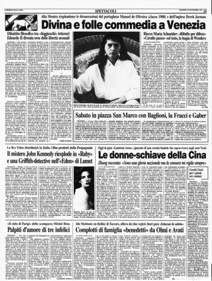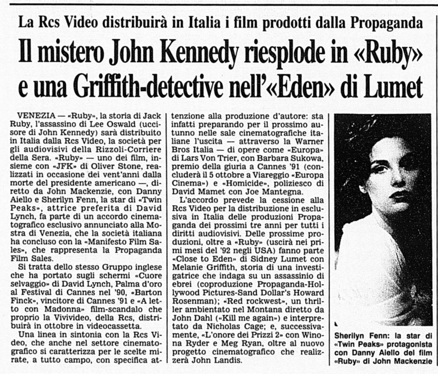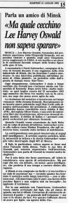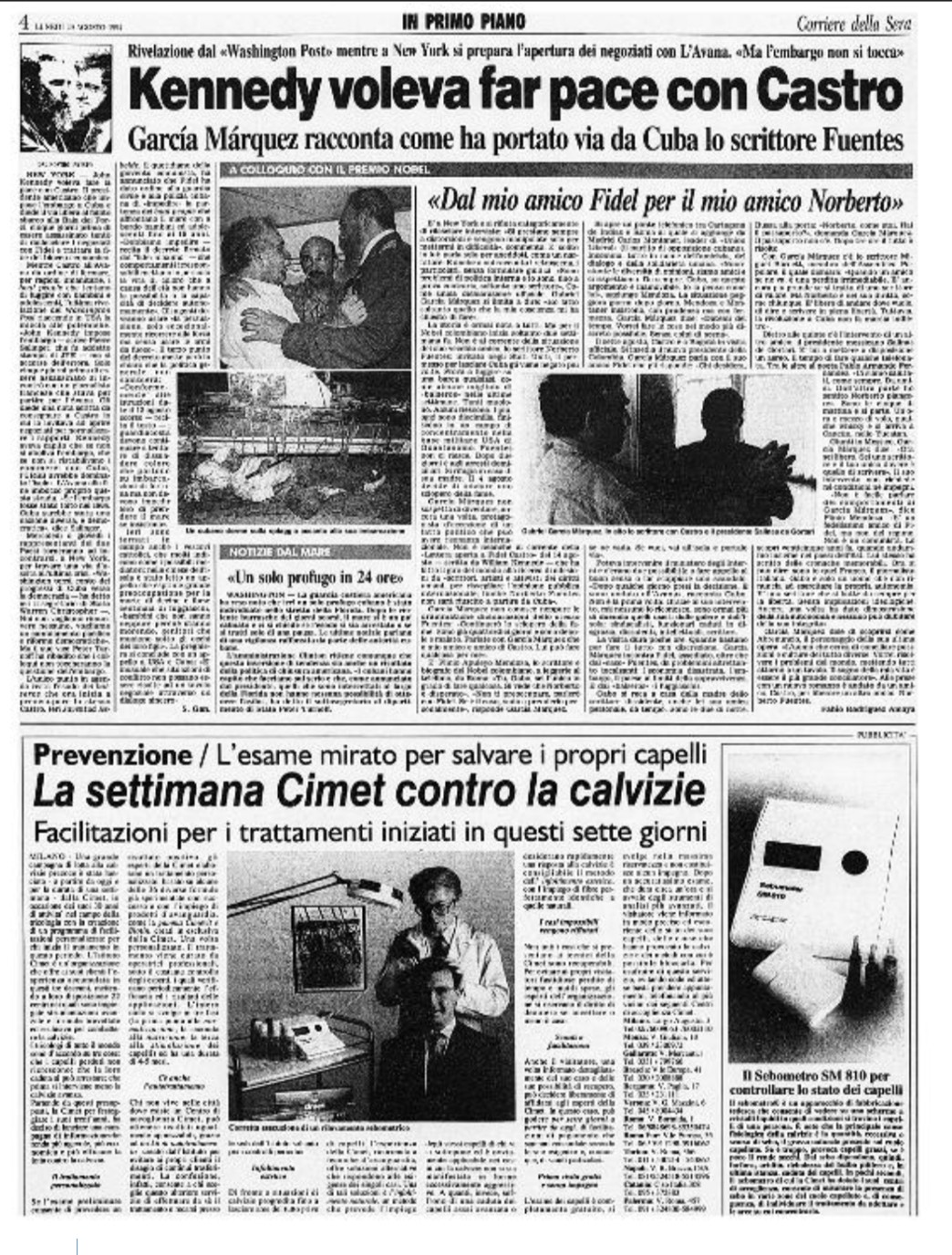 Copy of an article from CORRIERE DELLA SERA dated October 10, 1991.