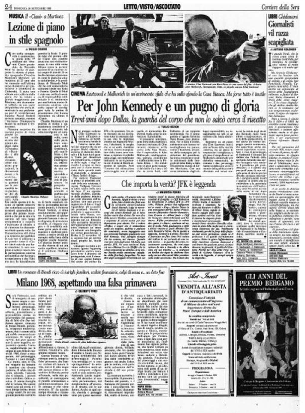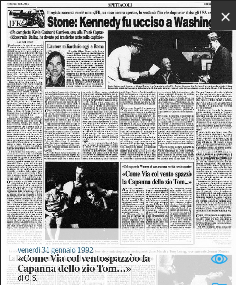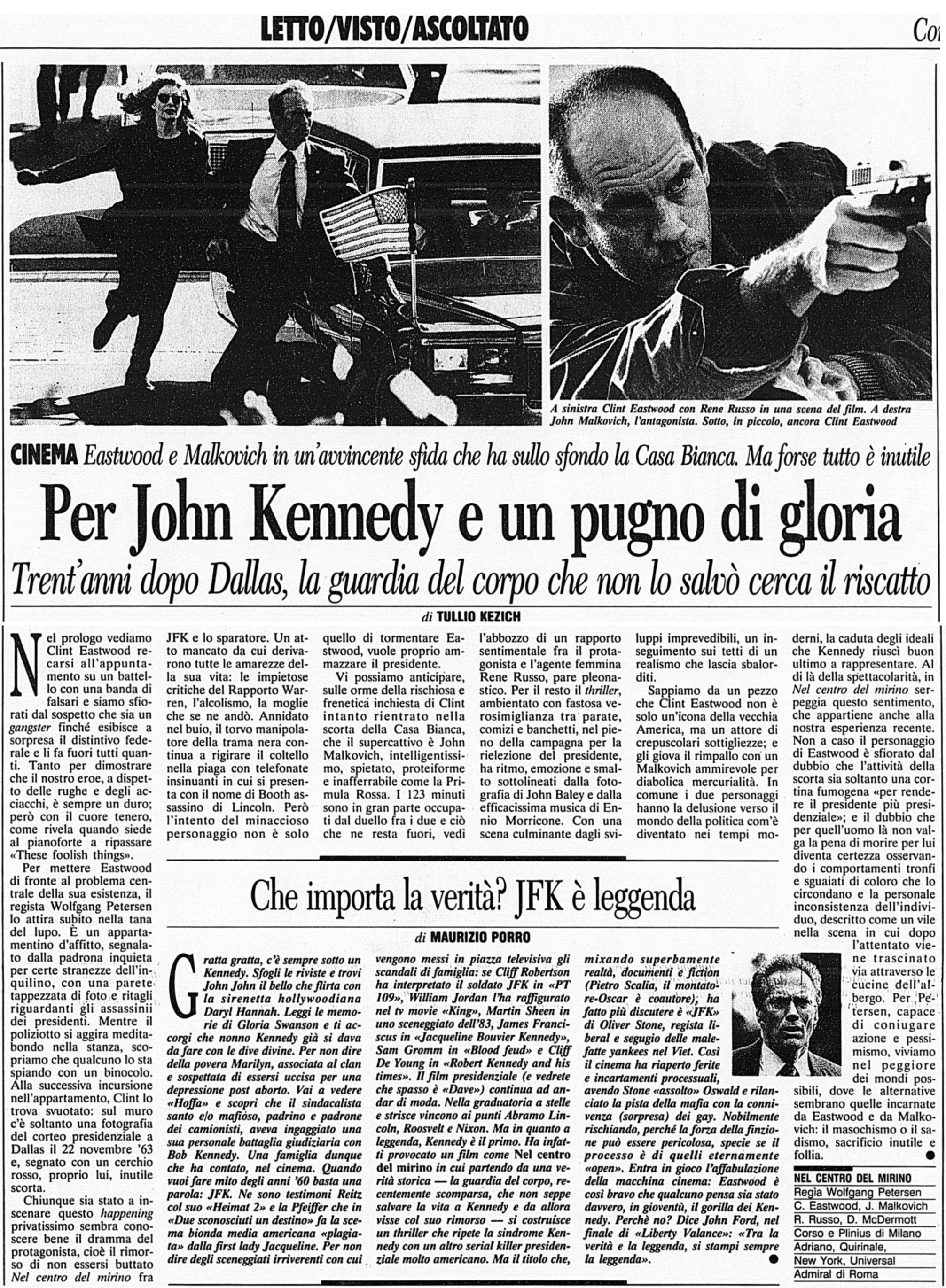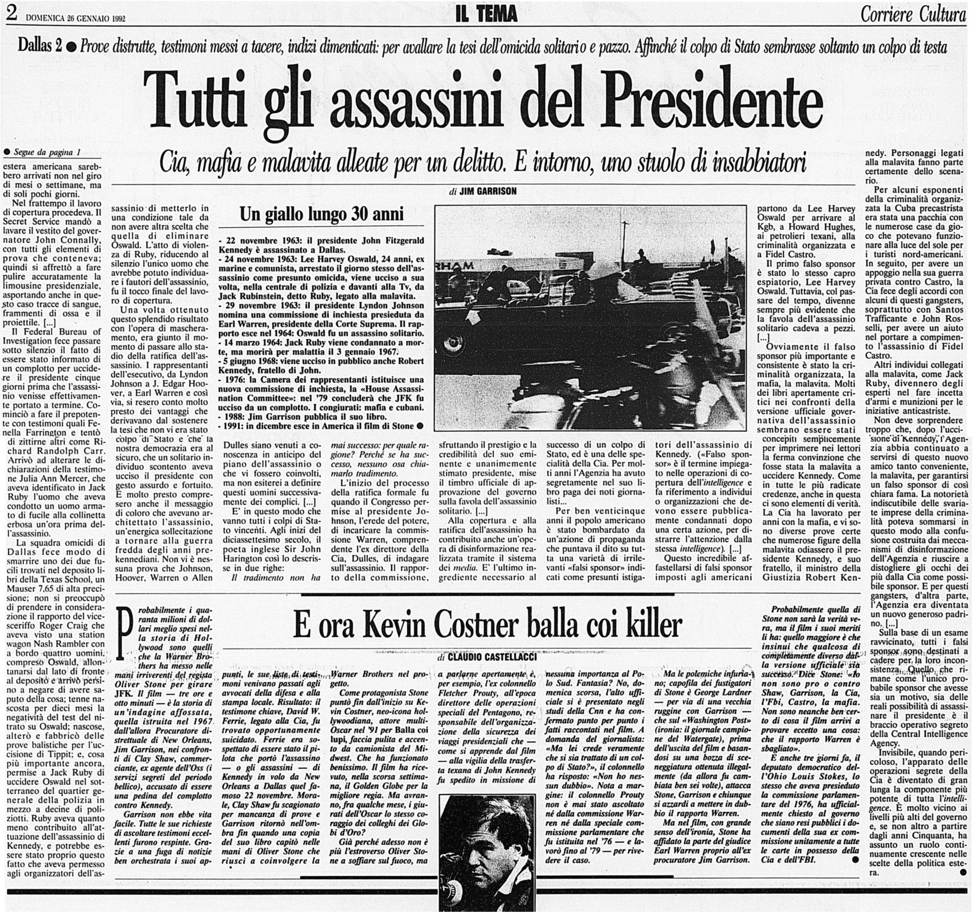 First article (by Tullio Kezich): "Costner reopens the Kennedy case."