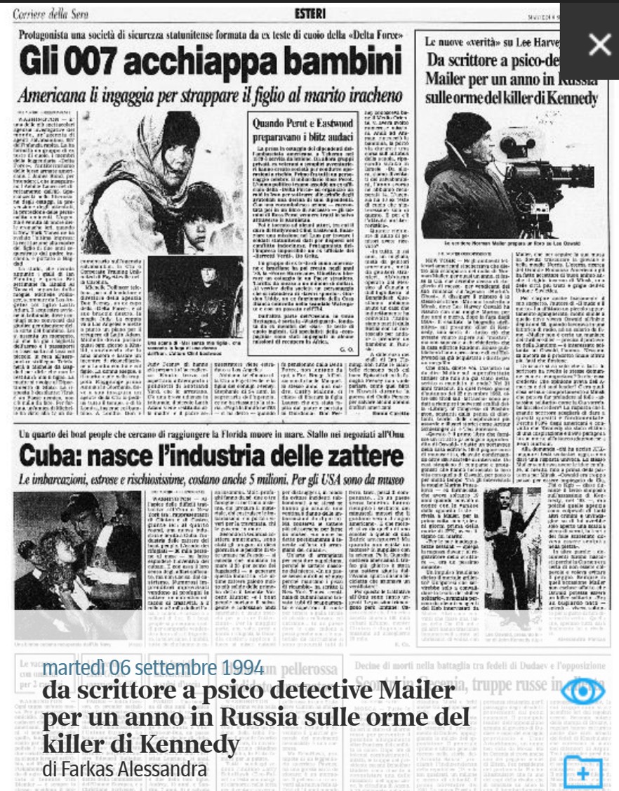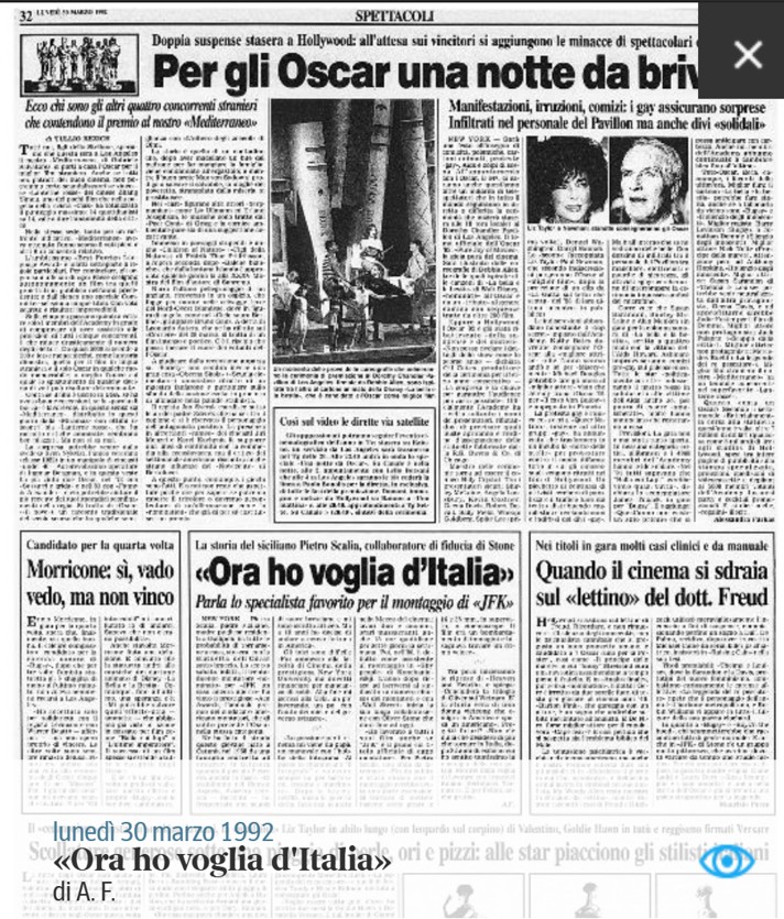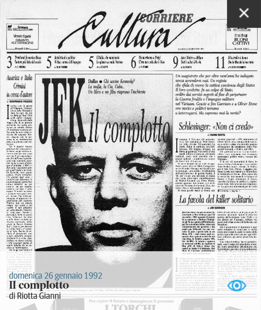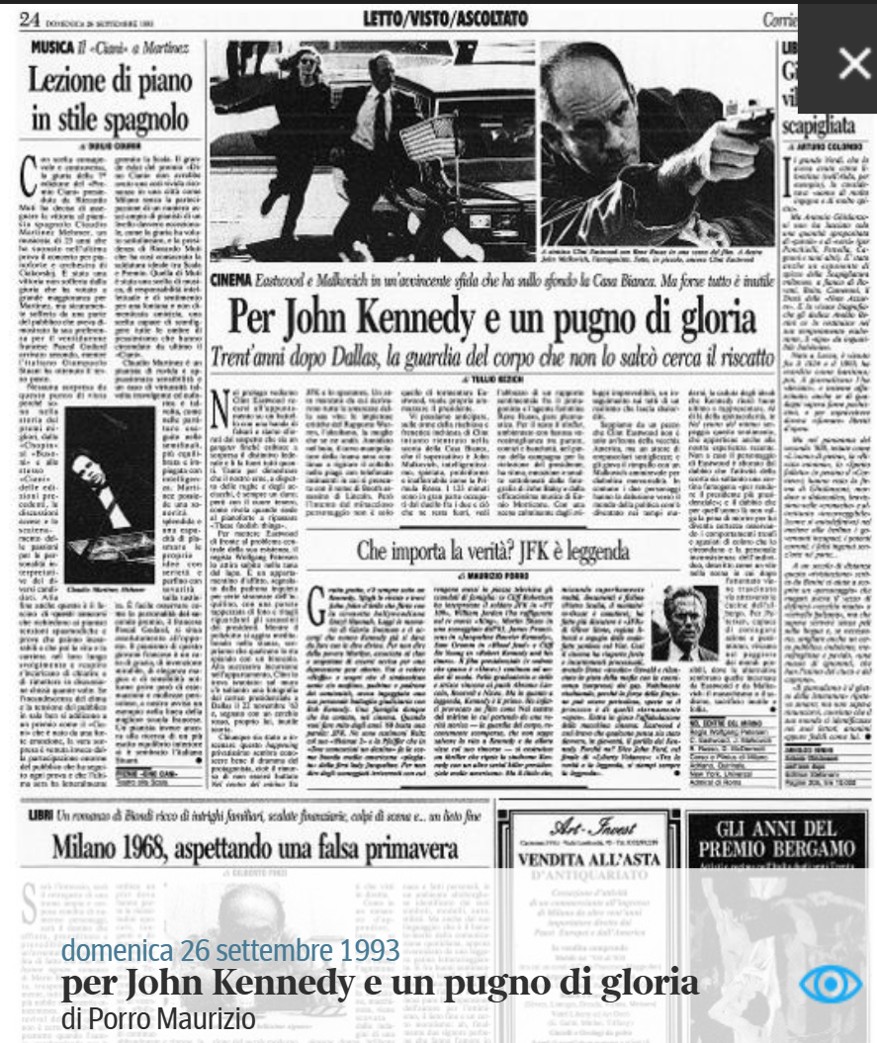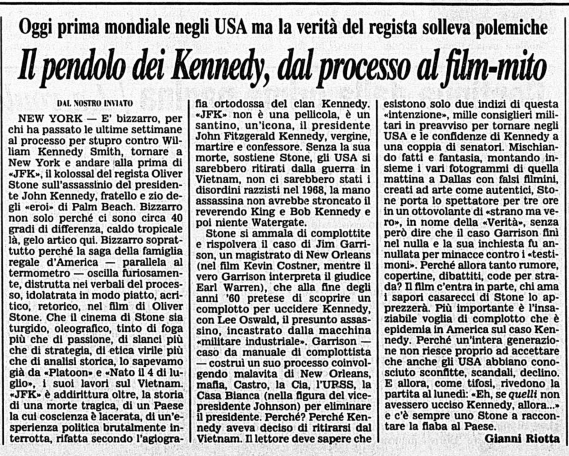 First article (by Tullio Kezich): "Costner reopens the Kennedy case."