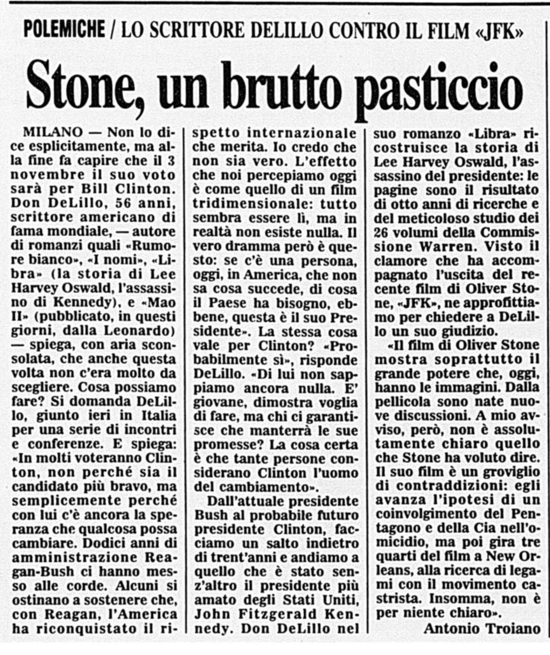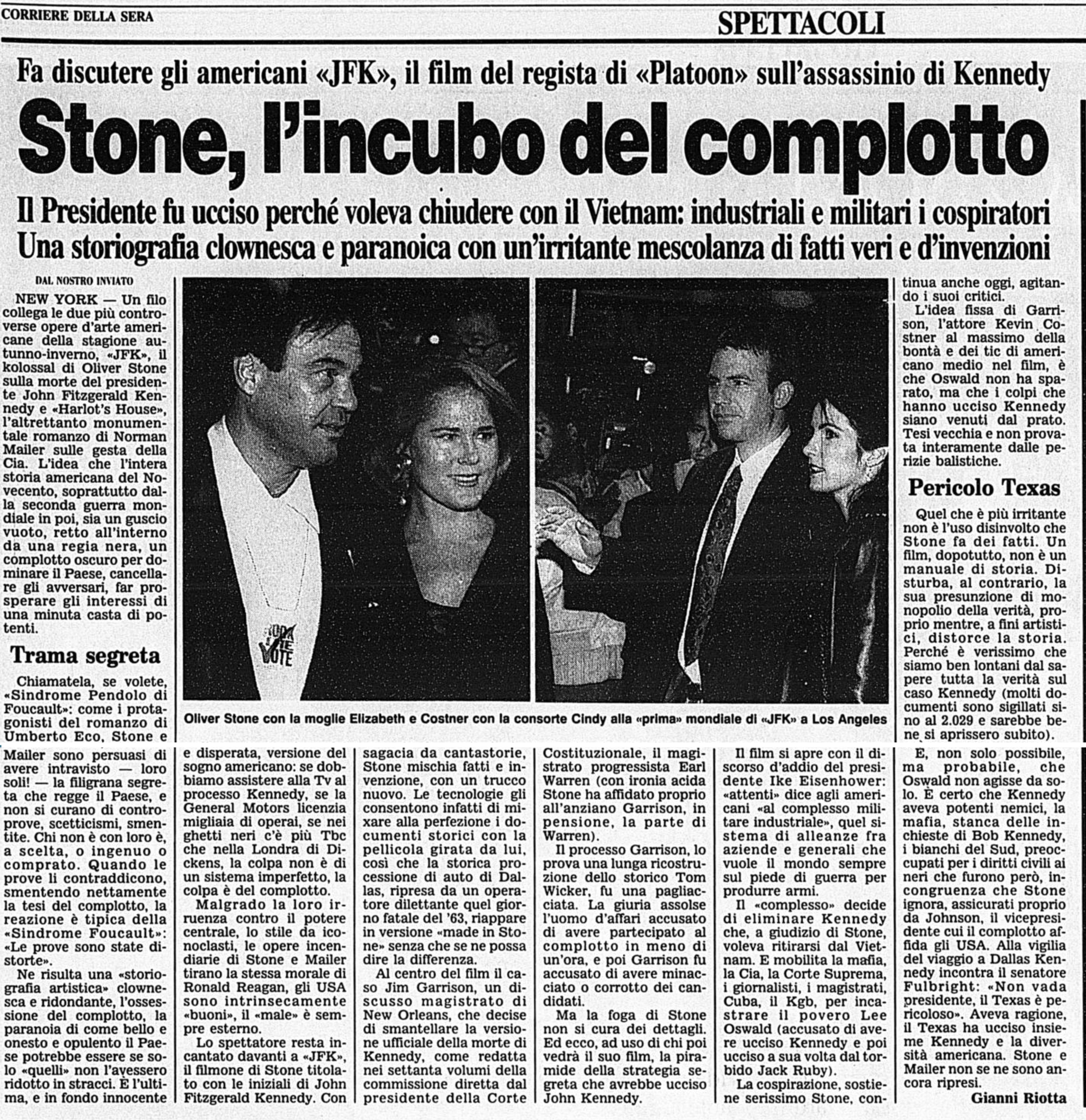Article (by Gianni Riotta): "Stone, the nightmare of conspiracy."