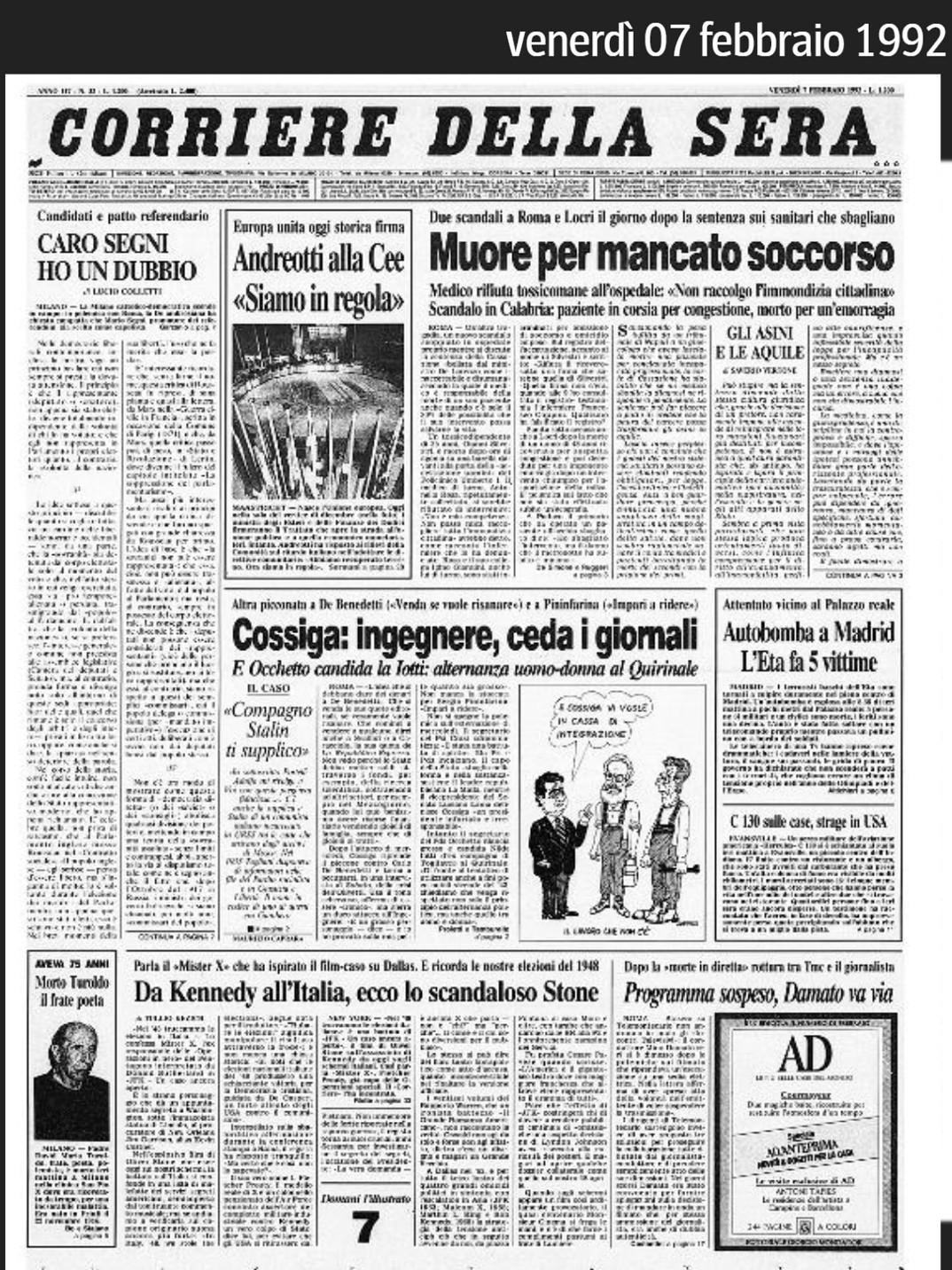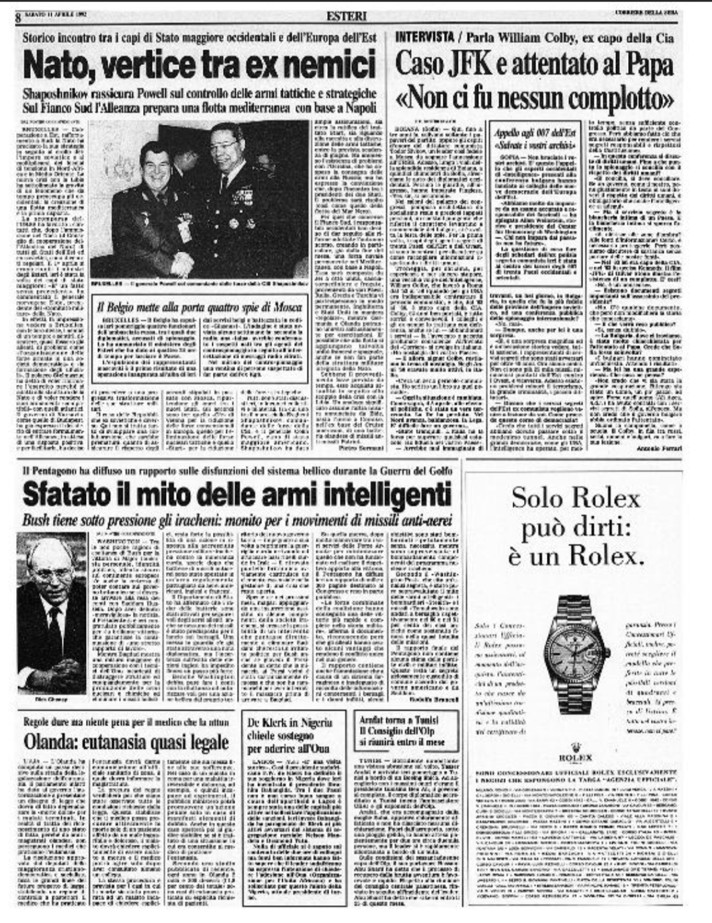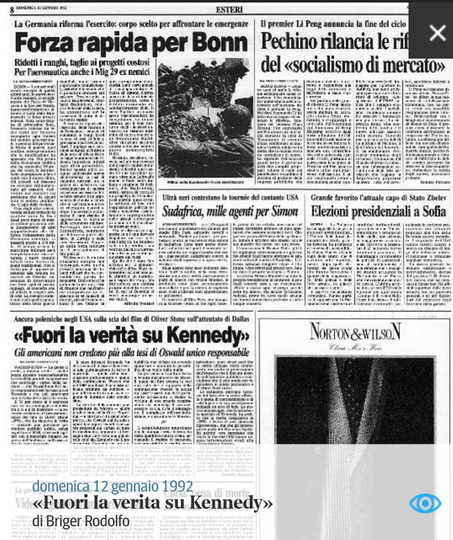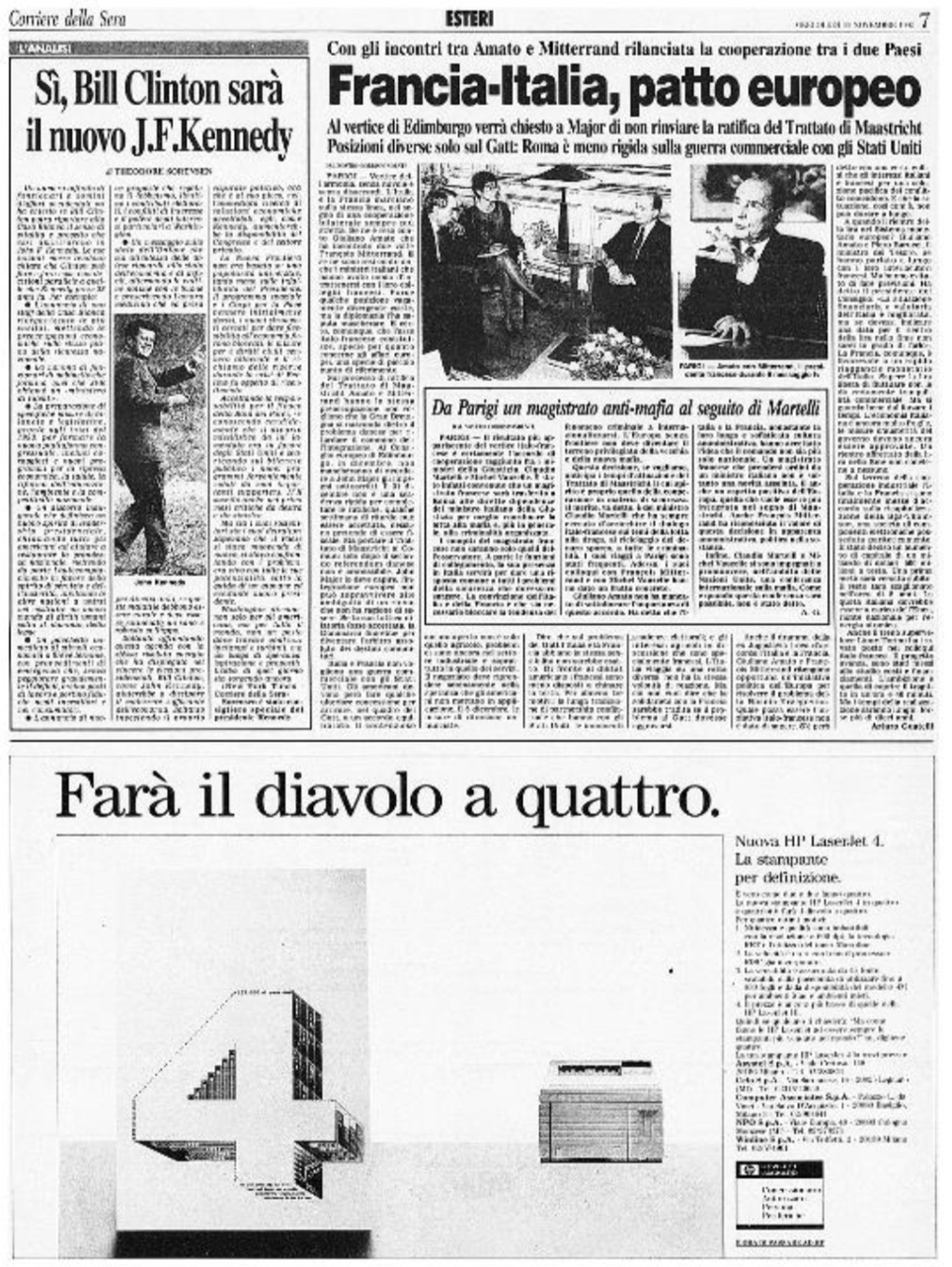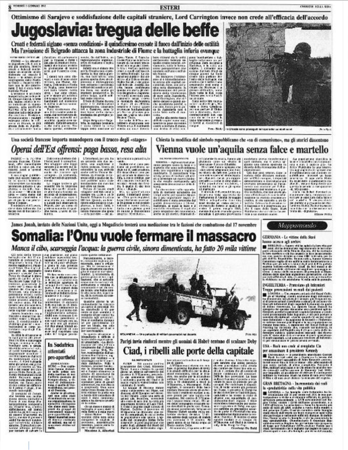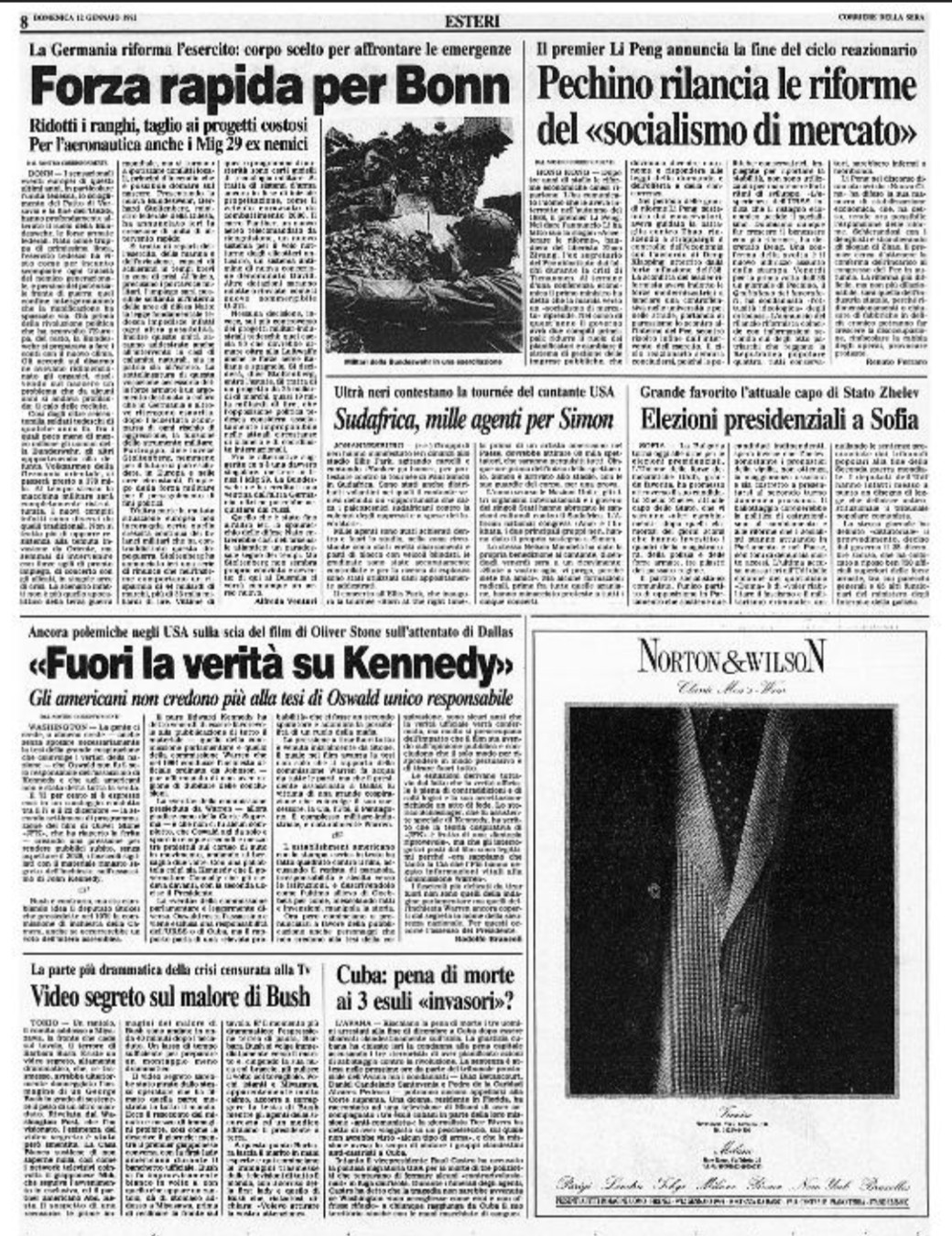 Copy of an article from CORRIERE DELLA SERA dated January 3, 1992.
