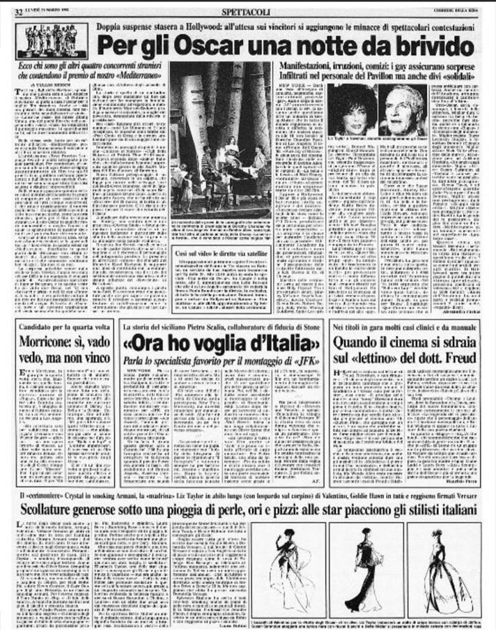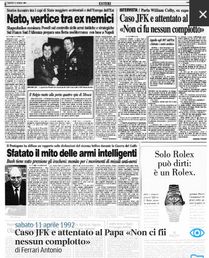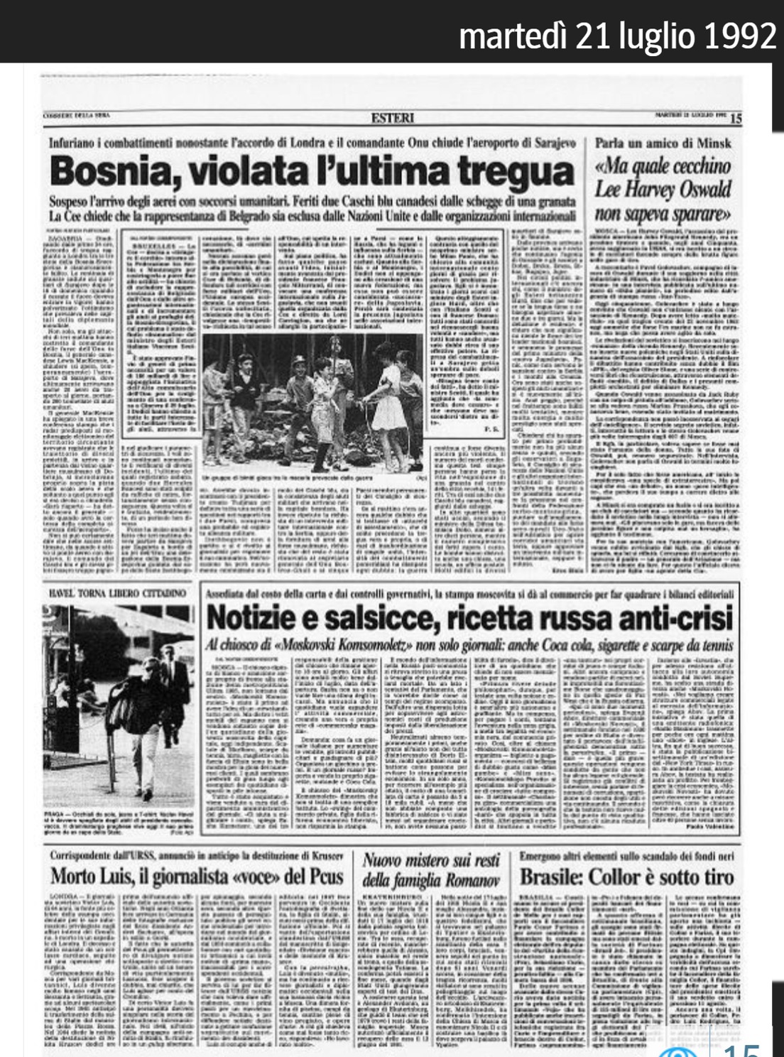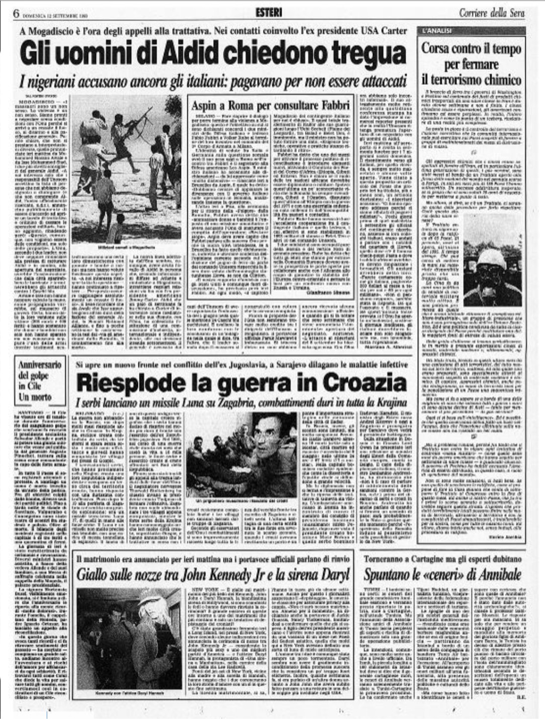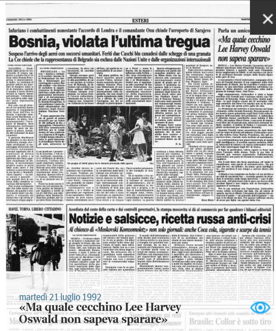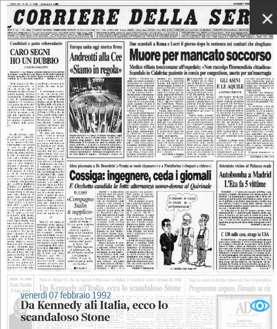 Copy of an article from CORRIERE DELLA SERA dated January 3, 1992.