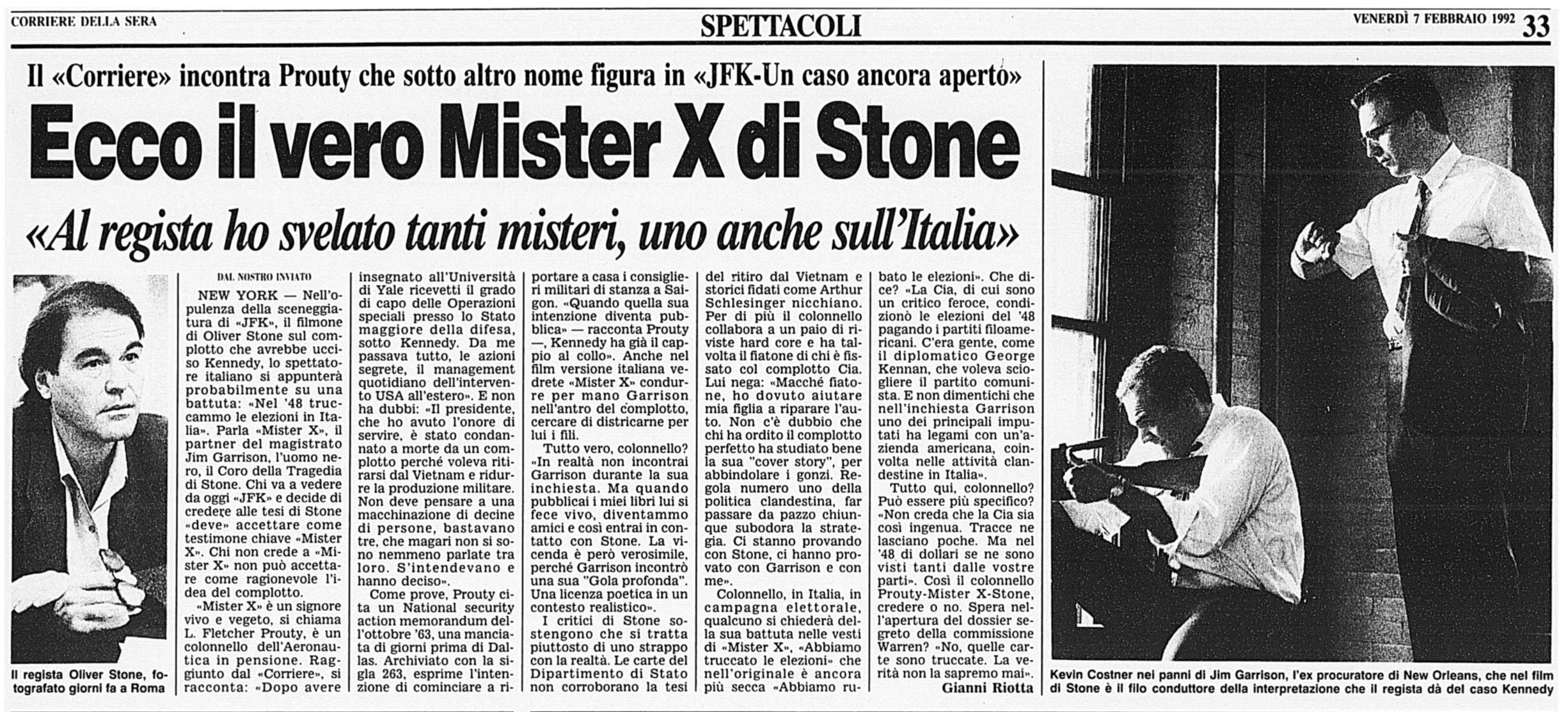 Article (by Gianni Riotta): "Here is the real Mister X from Stone."