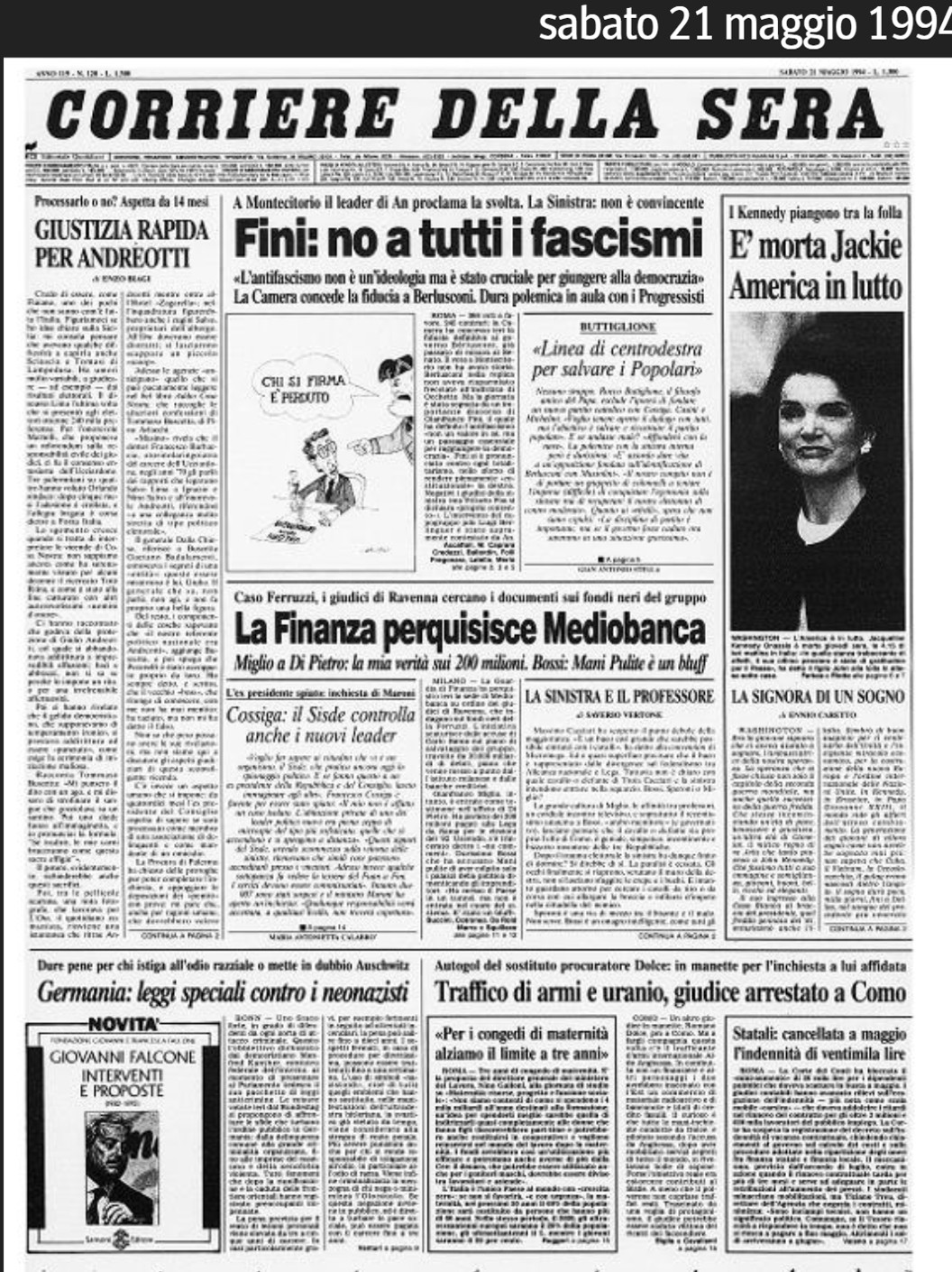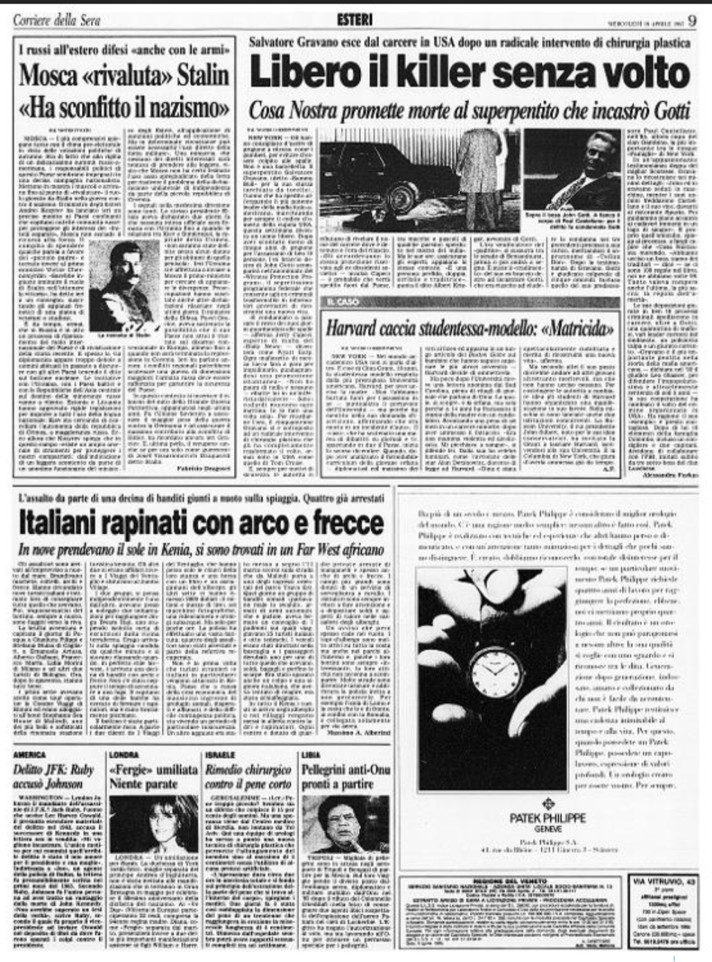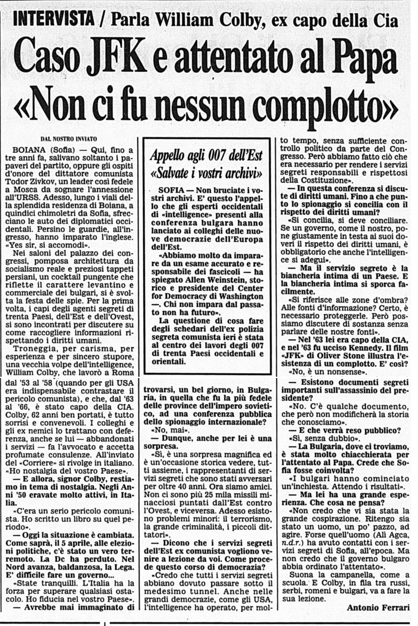 Copy of an article from CORRIERE DELLA SERA dated April 19, 1995.