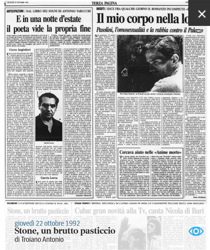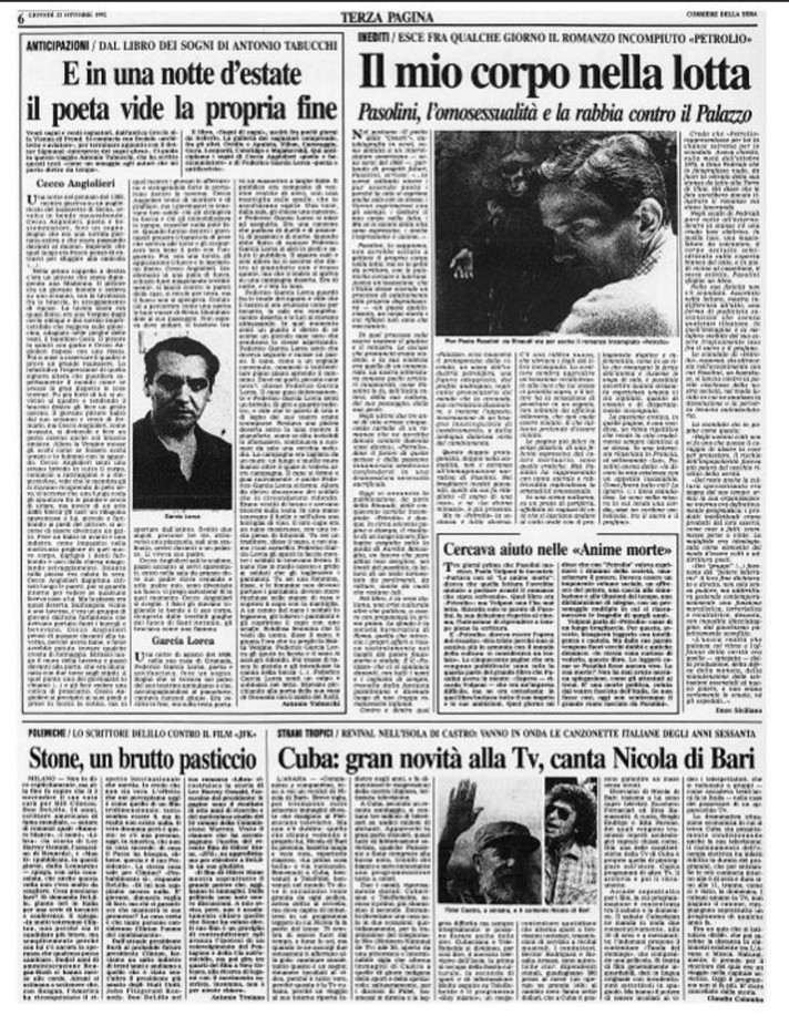 1992. Special feature from the "Corriere Cultura" supplement, titled: