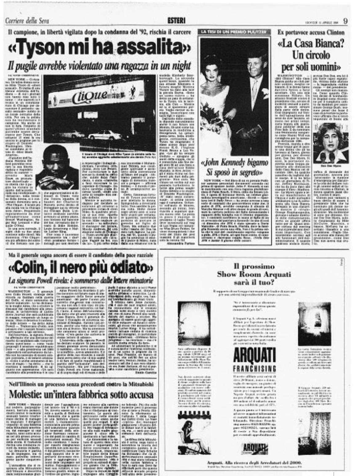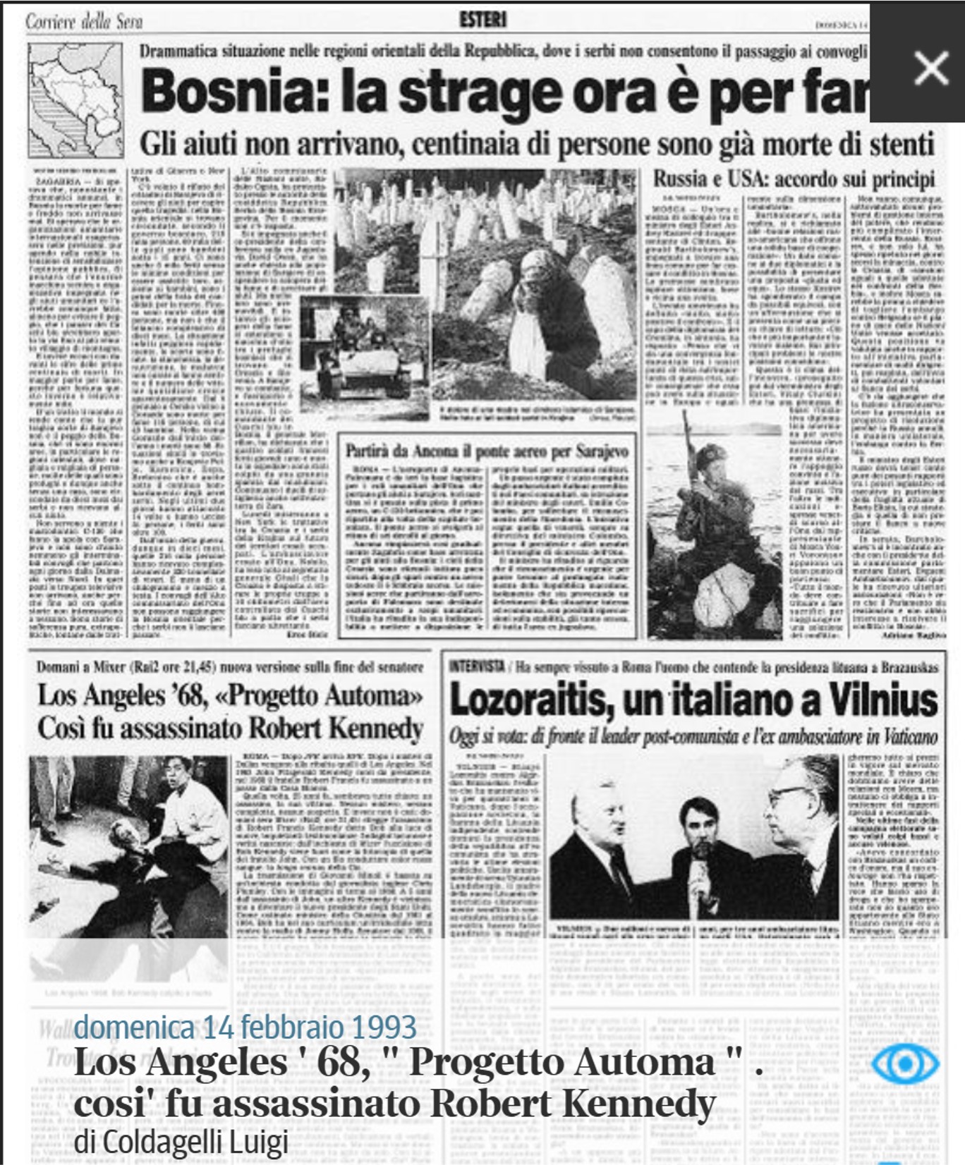 Copy of an article from the Italian newspaper CORRIERE DELLA SERA,