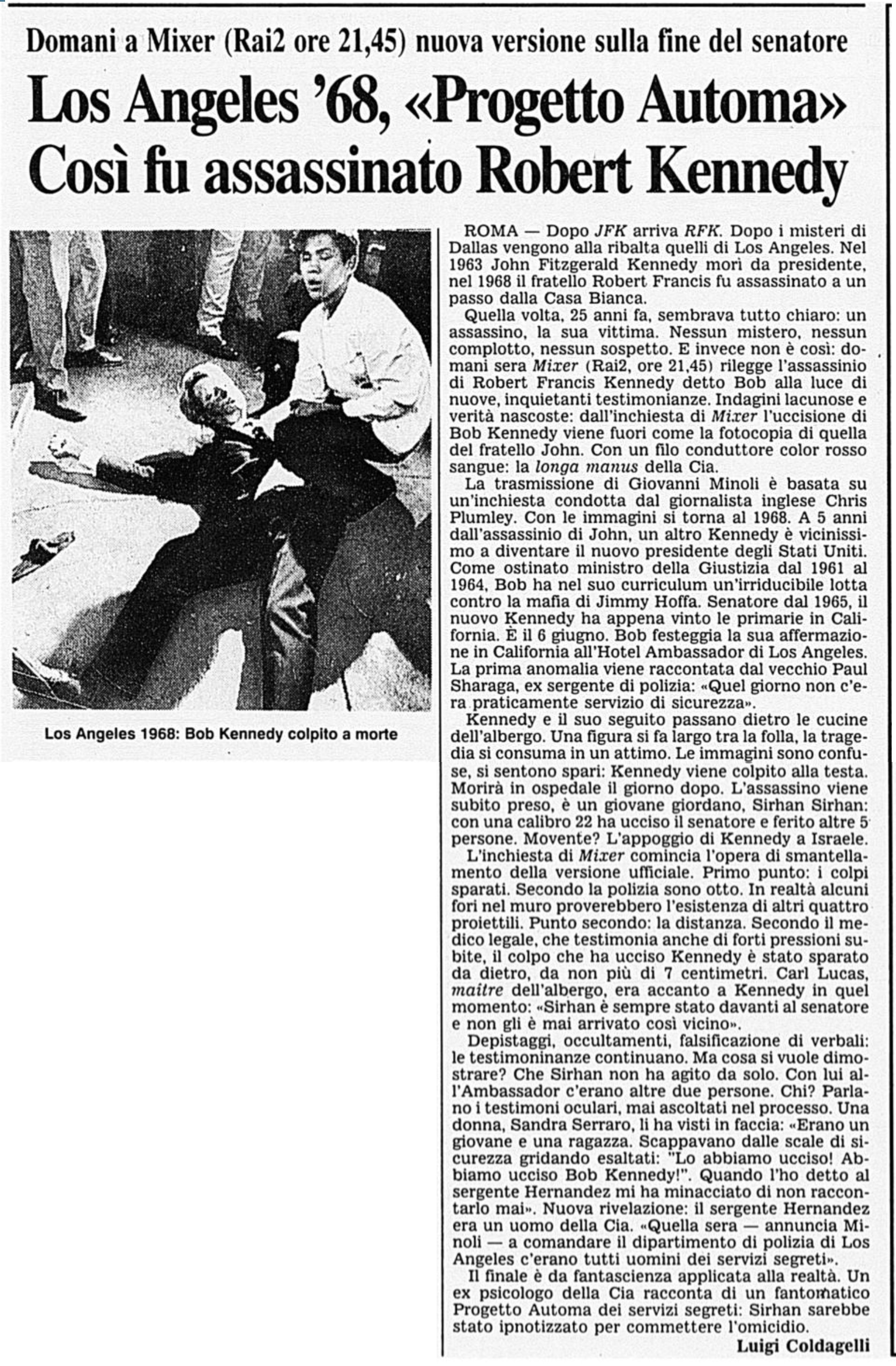 Article (by Rodolfo Brancoli): "The truth about Kennedy comes out."