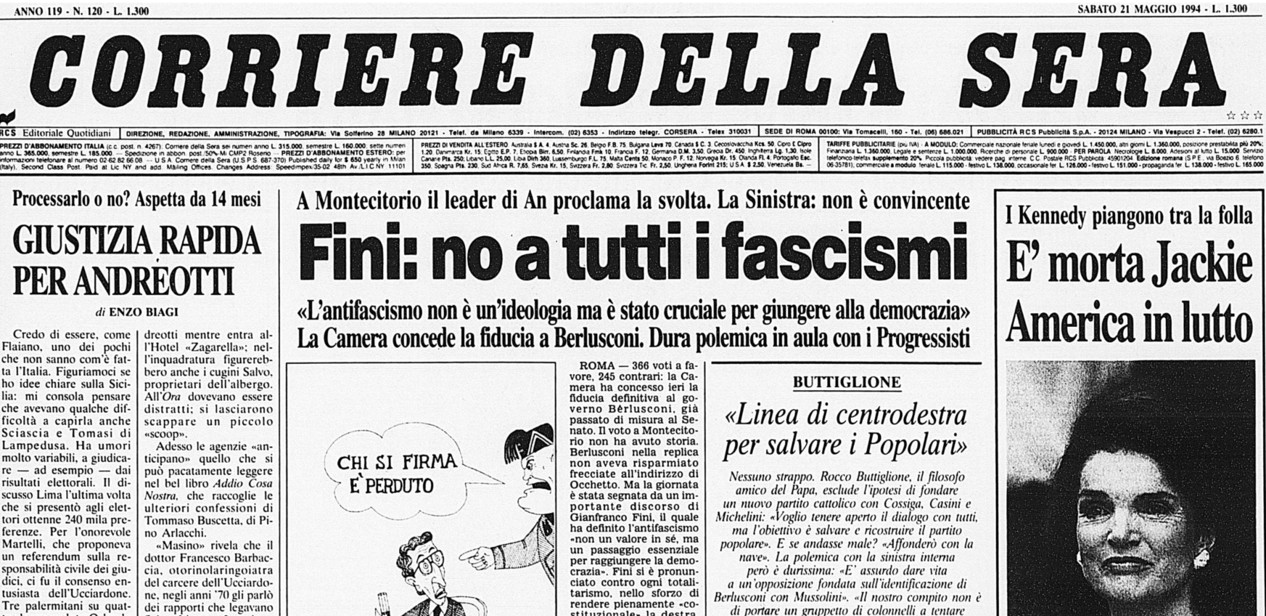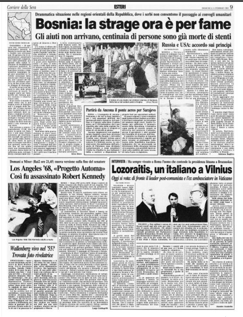Copy of a page from the Italian newspaper CORRIERE DELLA SERA, January