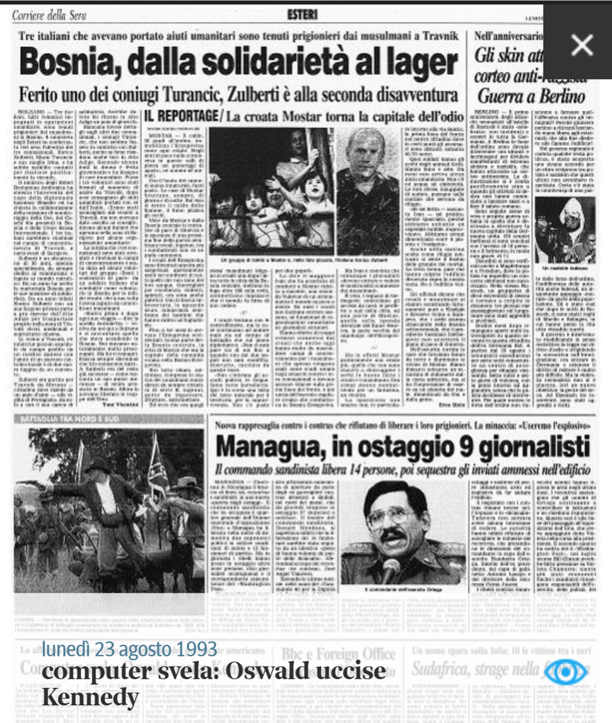 Copy of an article from the Italian newspaper CORRIERE DELLA