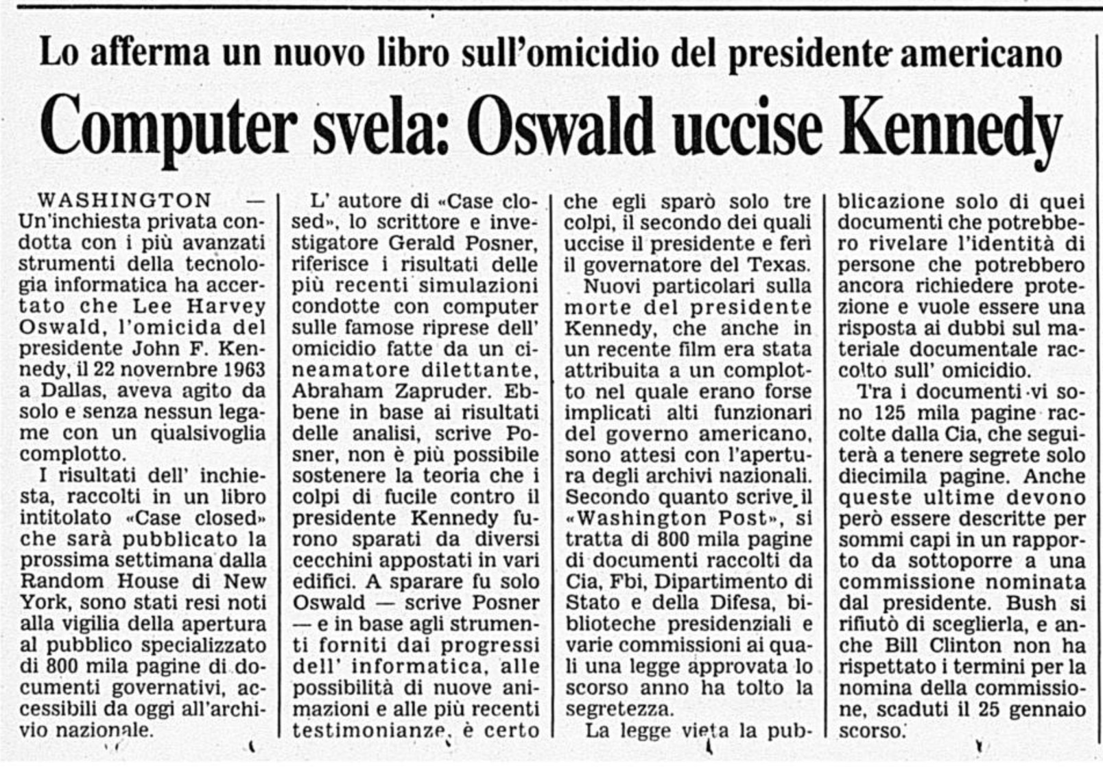 Article on JFK Assassination, just after the Oliver Stone's movie