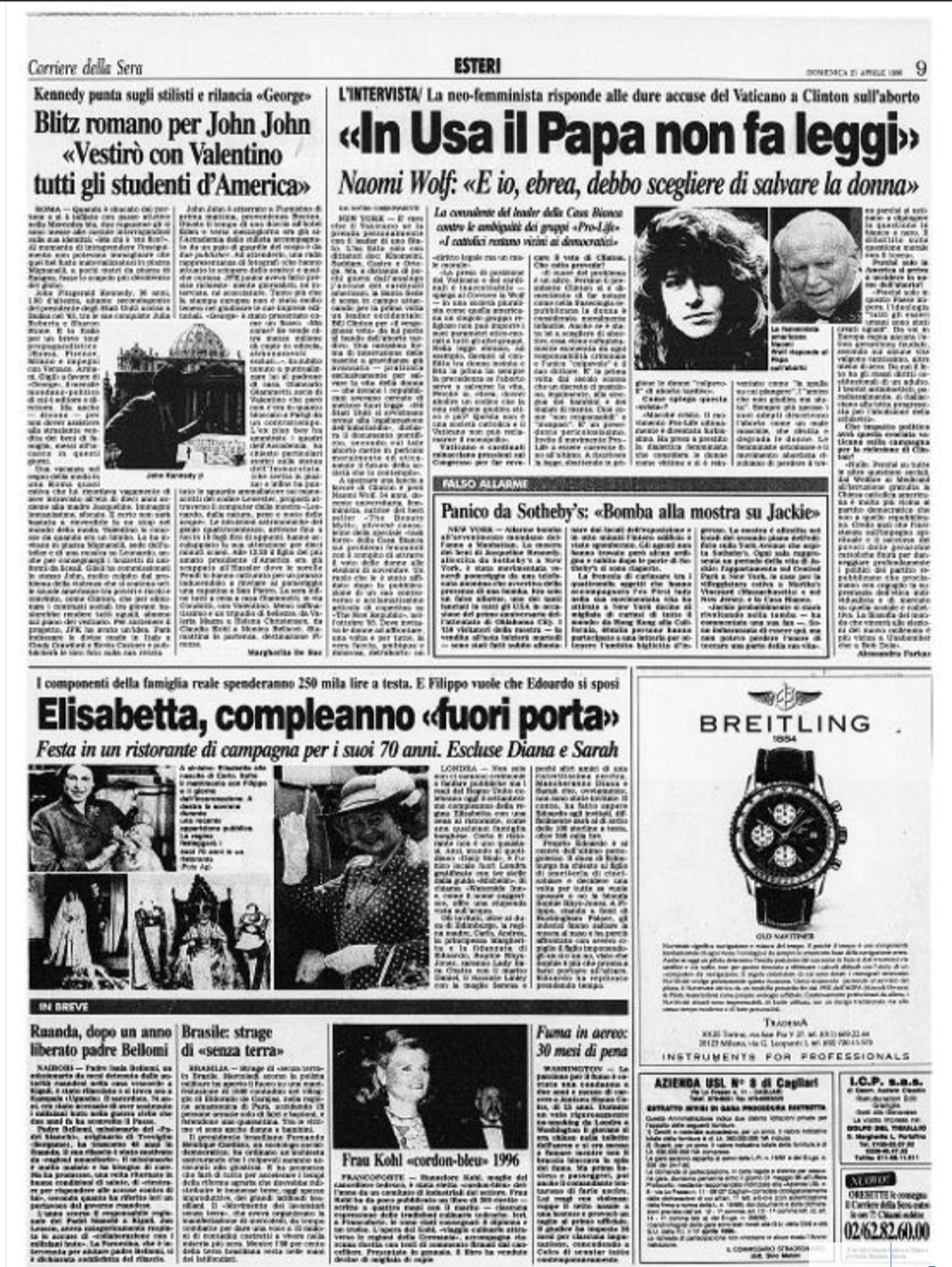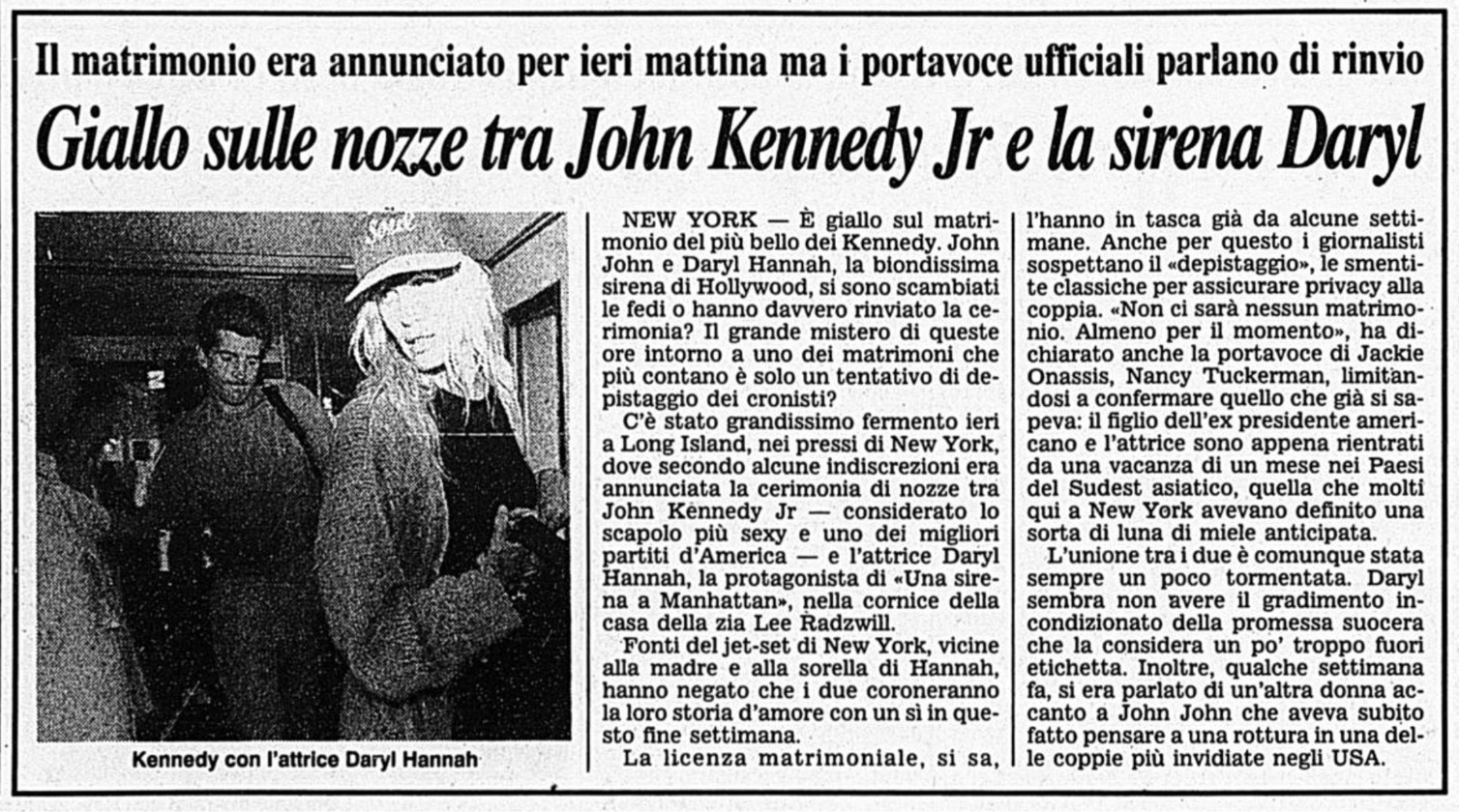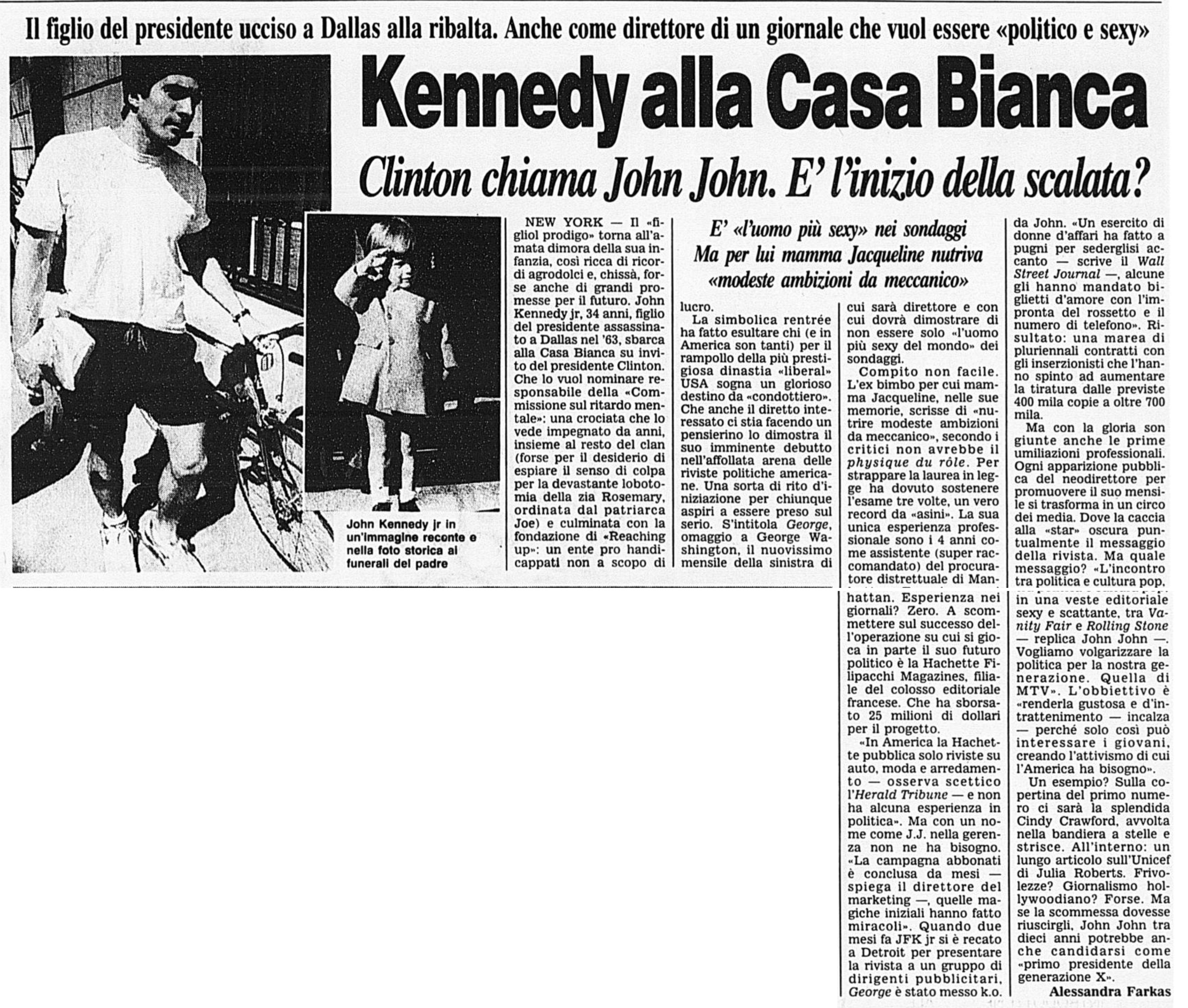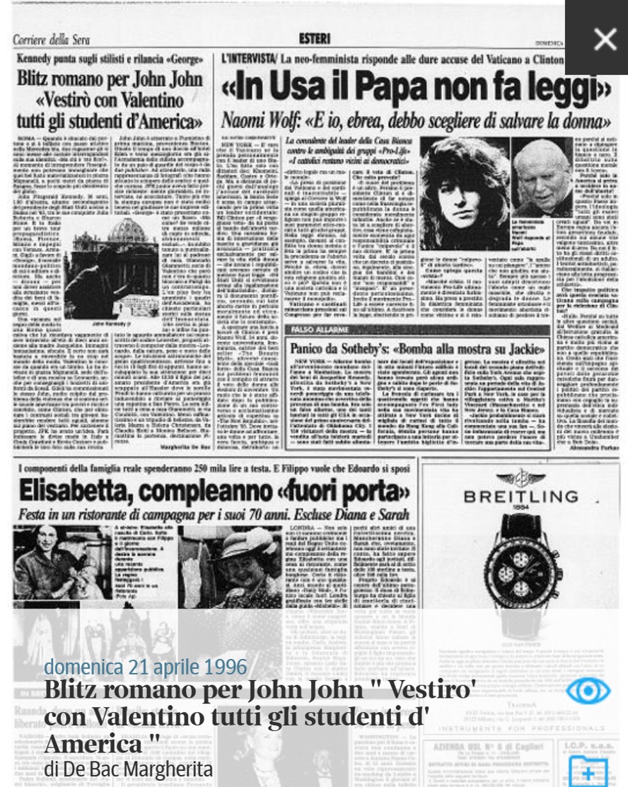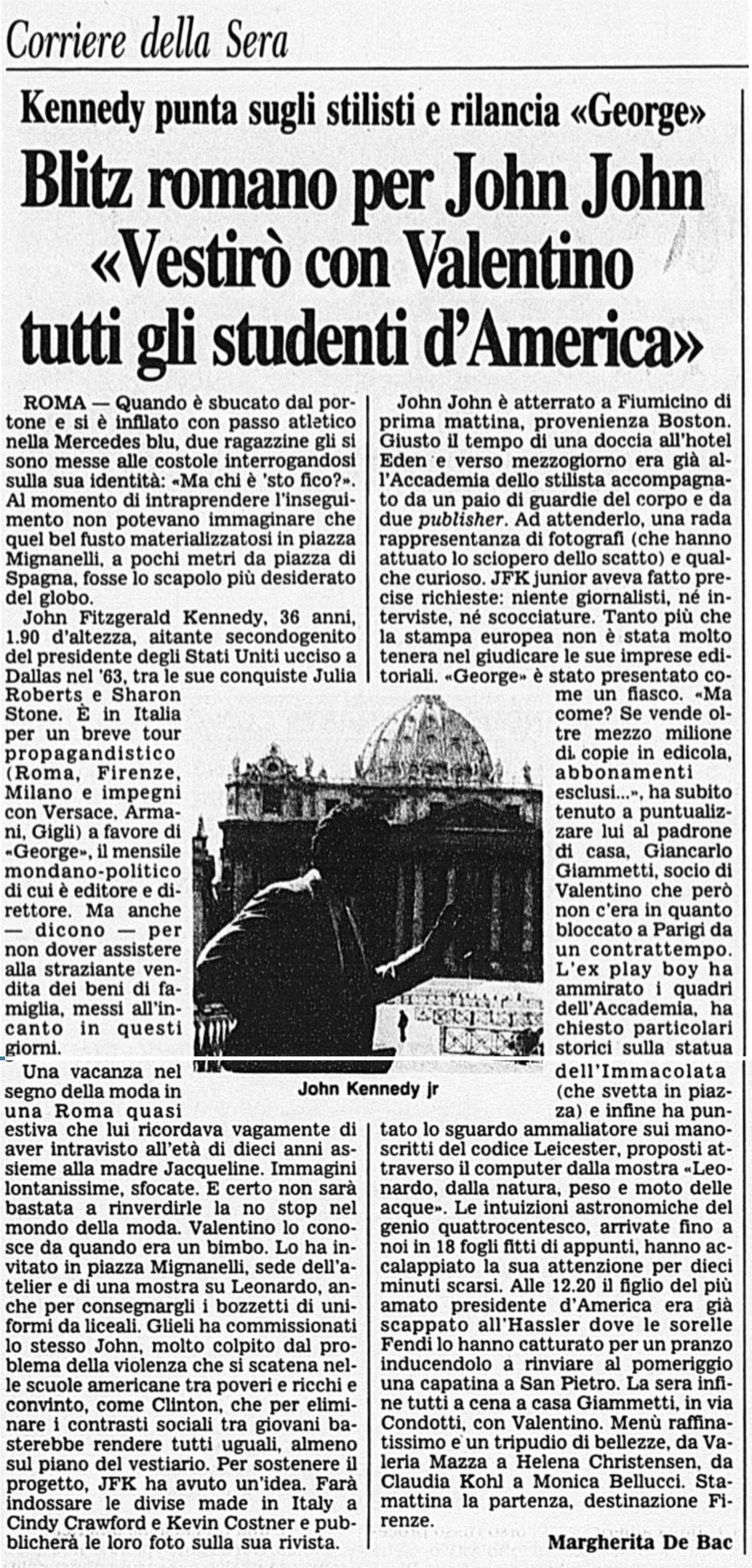 Article (by Margherita de Bac): "Rome raid for John John: 'I will dress