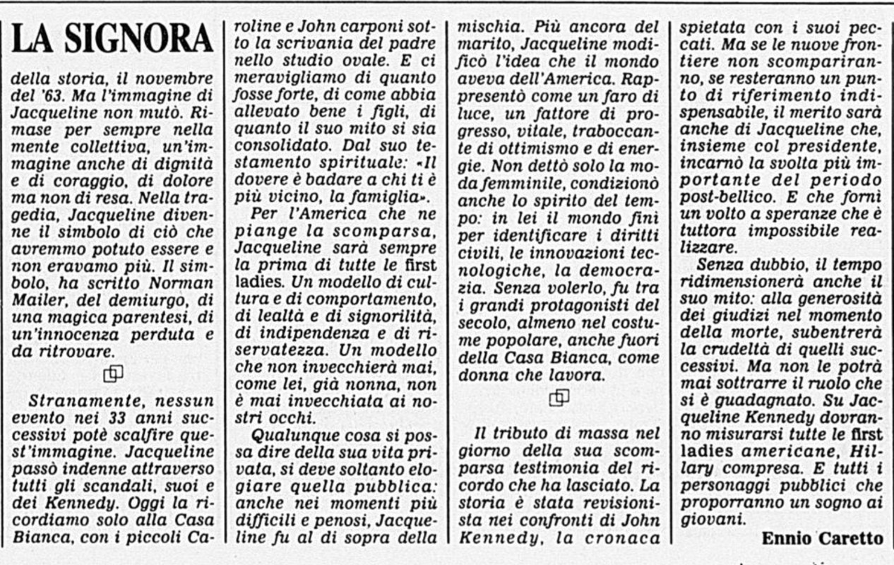 "One year after his death, an unpublished confession by Jacqueline Kennedy