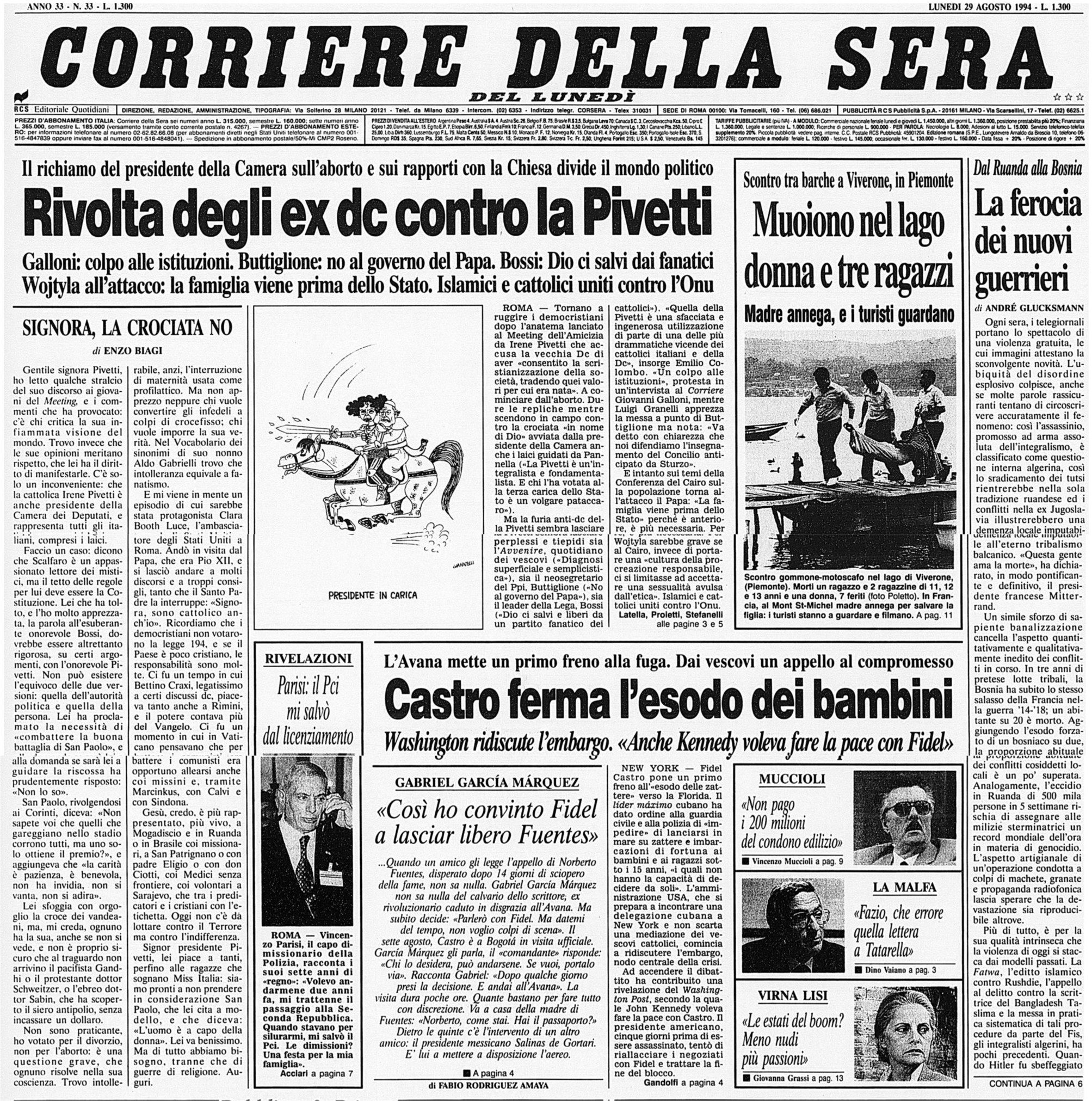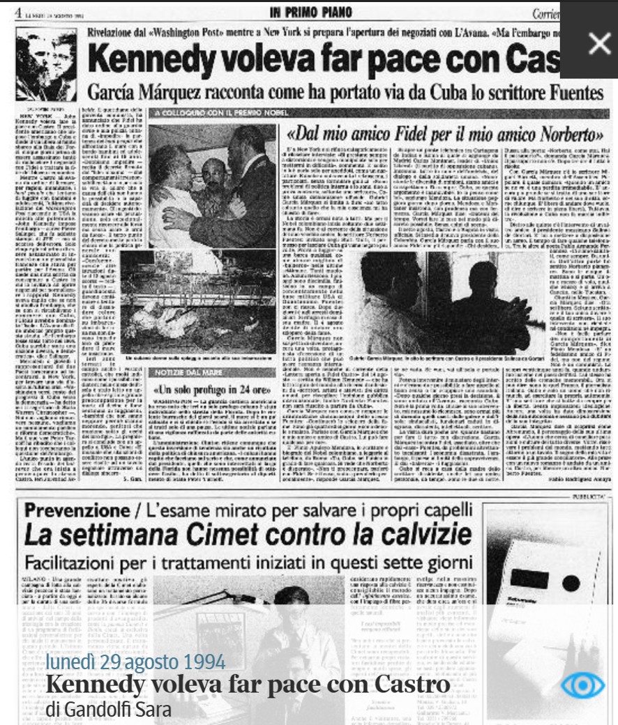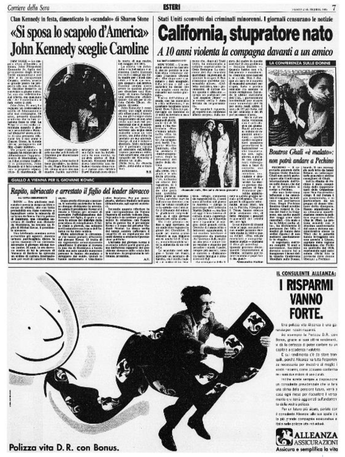 Copy of an article from the Italian newspaper CORRIERE DELLA SERA, July