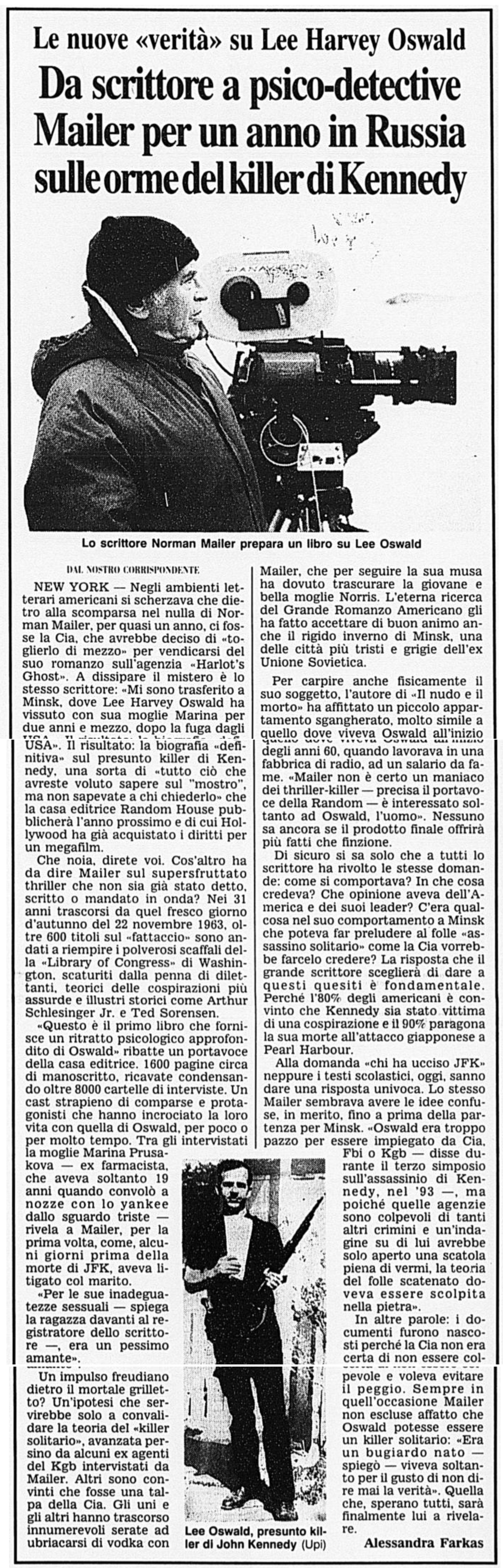 Article (by Alessandra Farkas): "The New Truths About Lee Harvey Oswald.