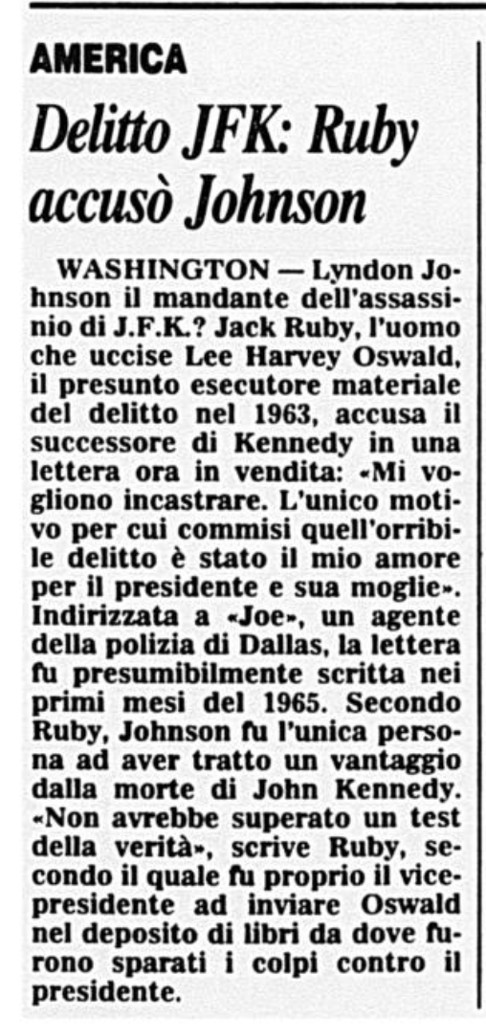 Article: "The John Kennedy mystery explodes again in 'Ruby'."