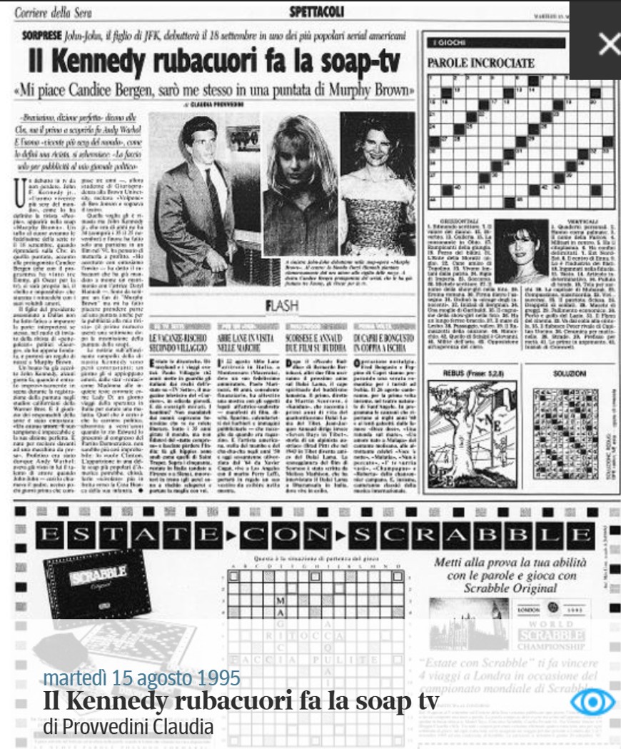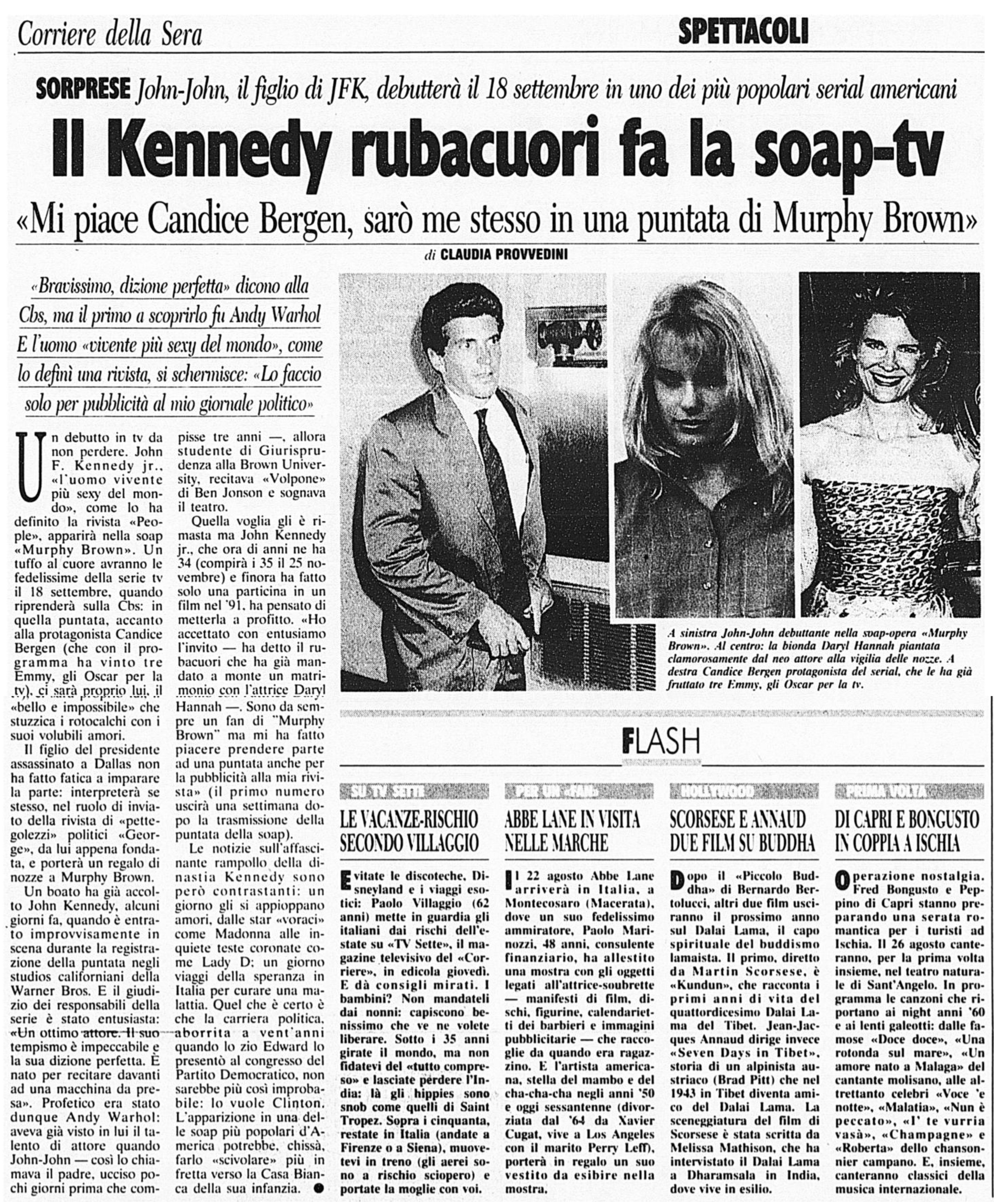 Article (by Claudia Provvedini): "The Kennedy heartthrob makes a soap