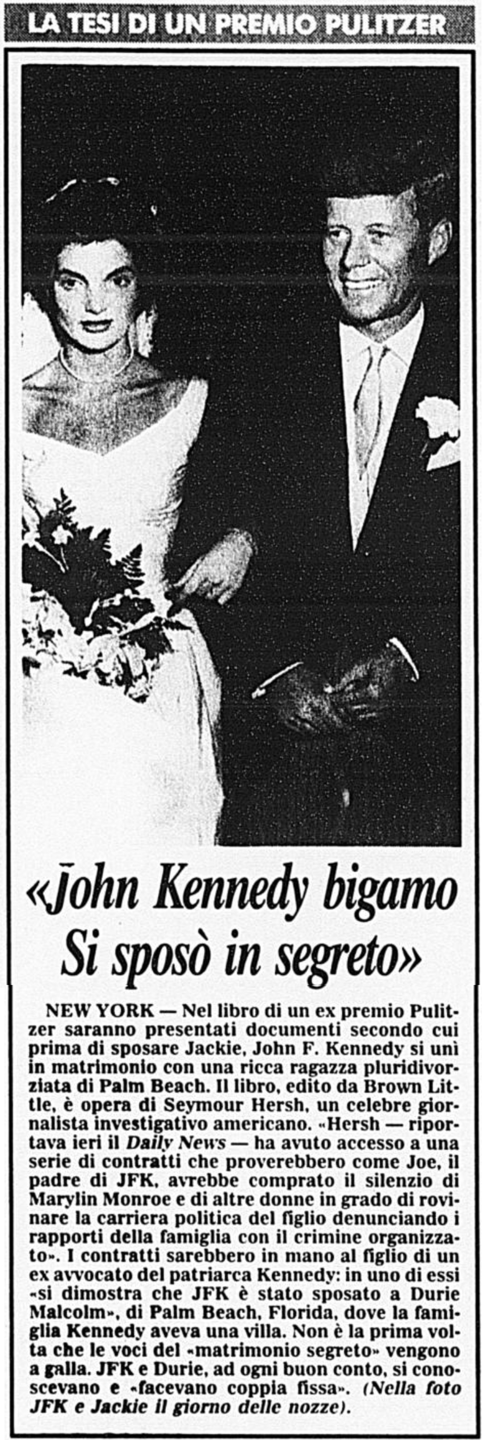 Article: "John Kennedy Bigamist. He Married in Secret." |
