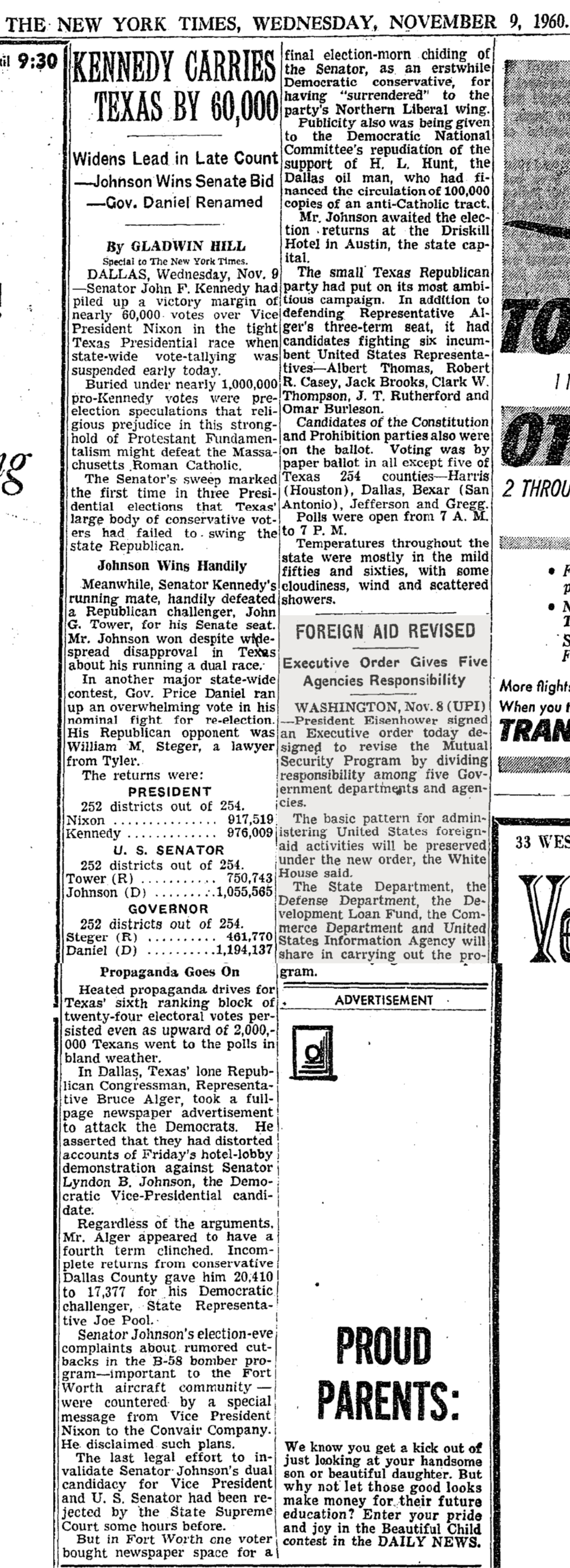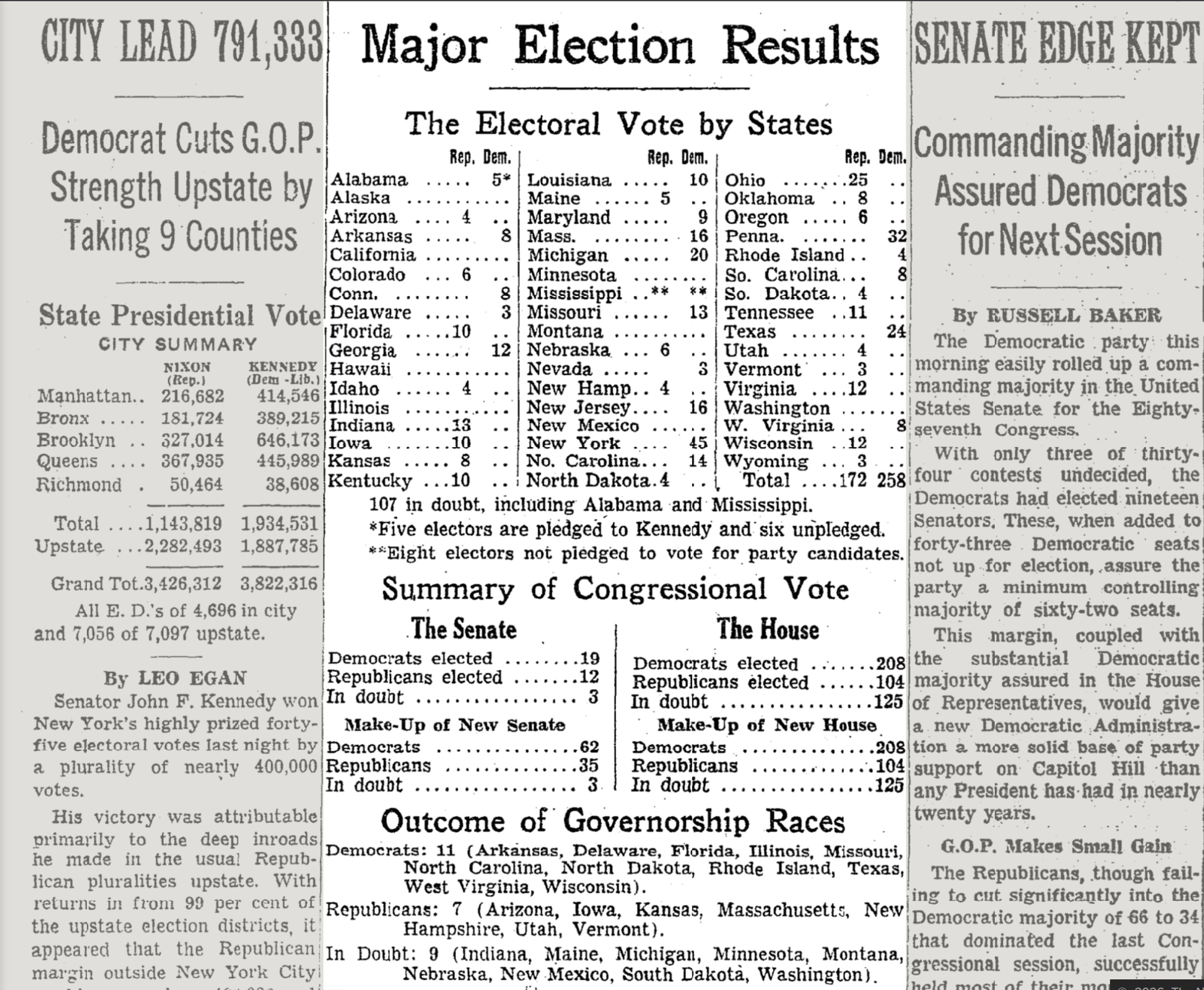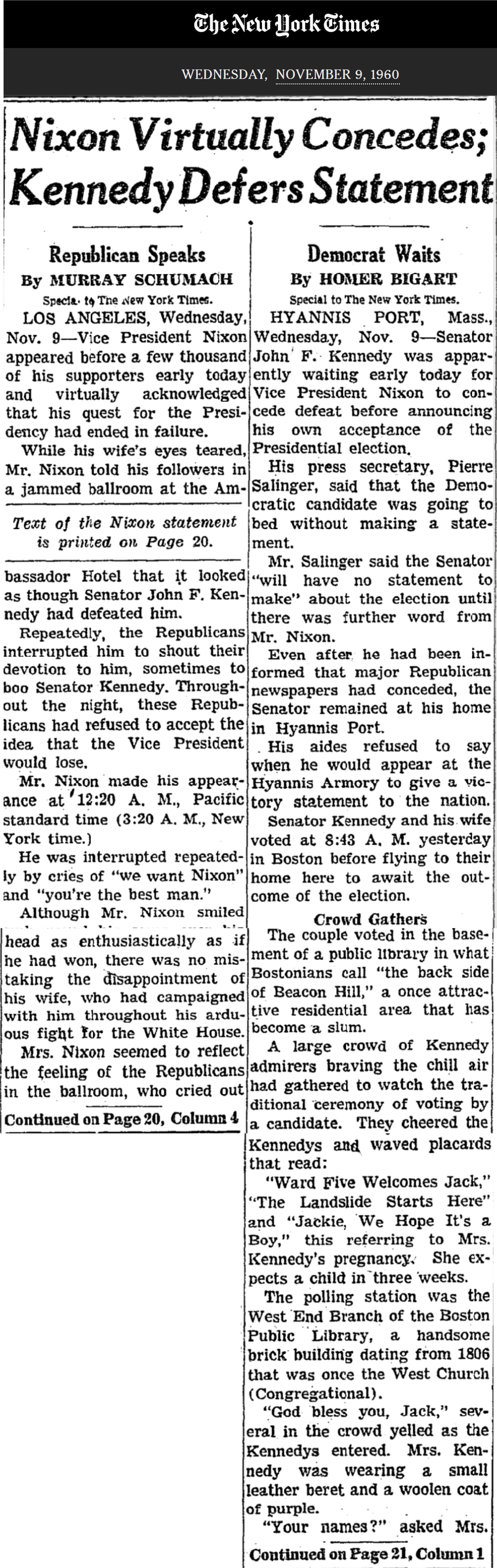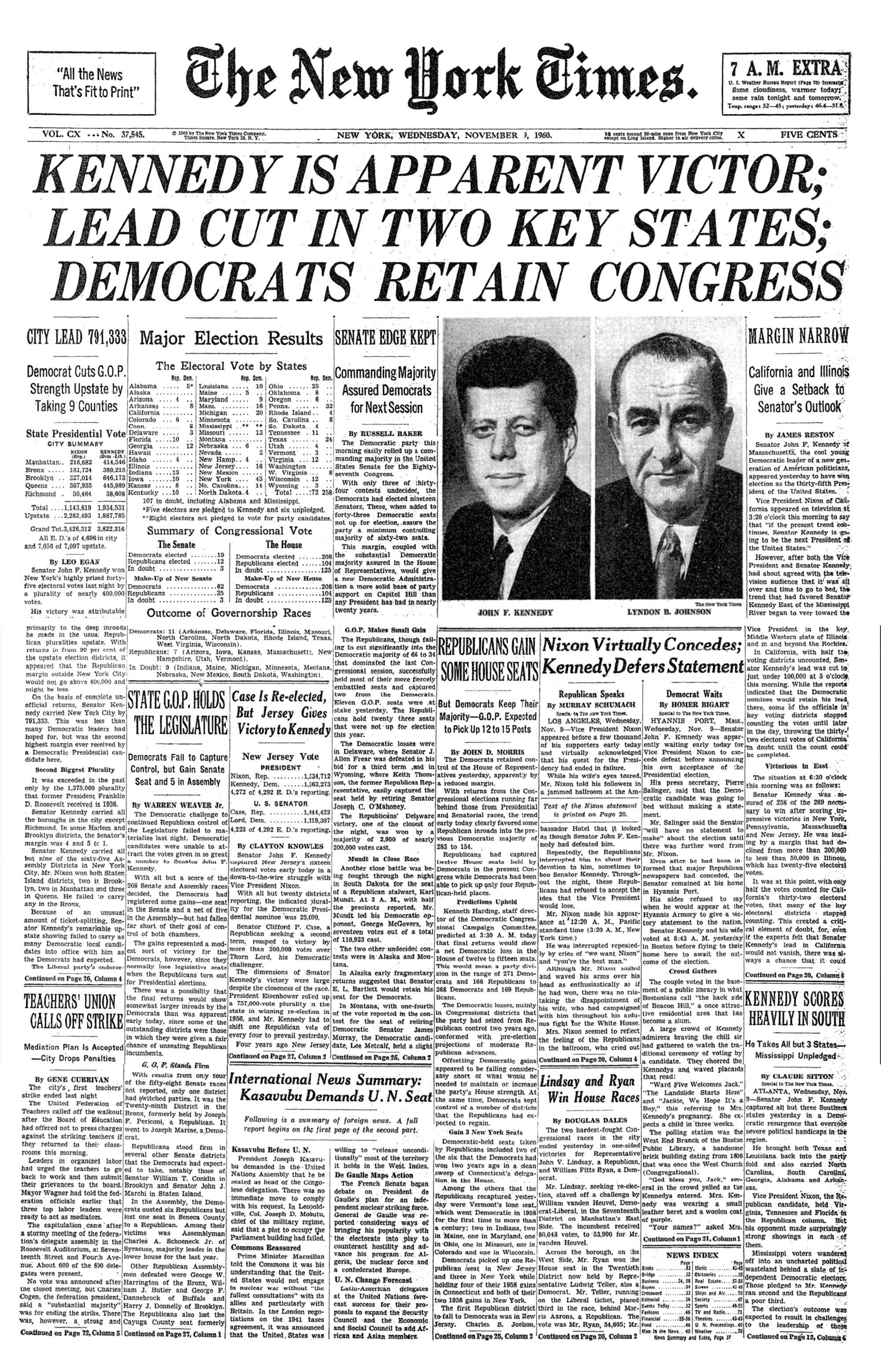 NEW YORK TIMES, dated November 9,1960 (the day after 1960 Presidential