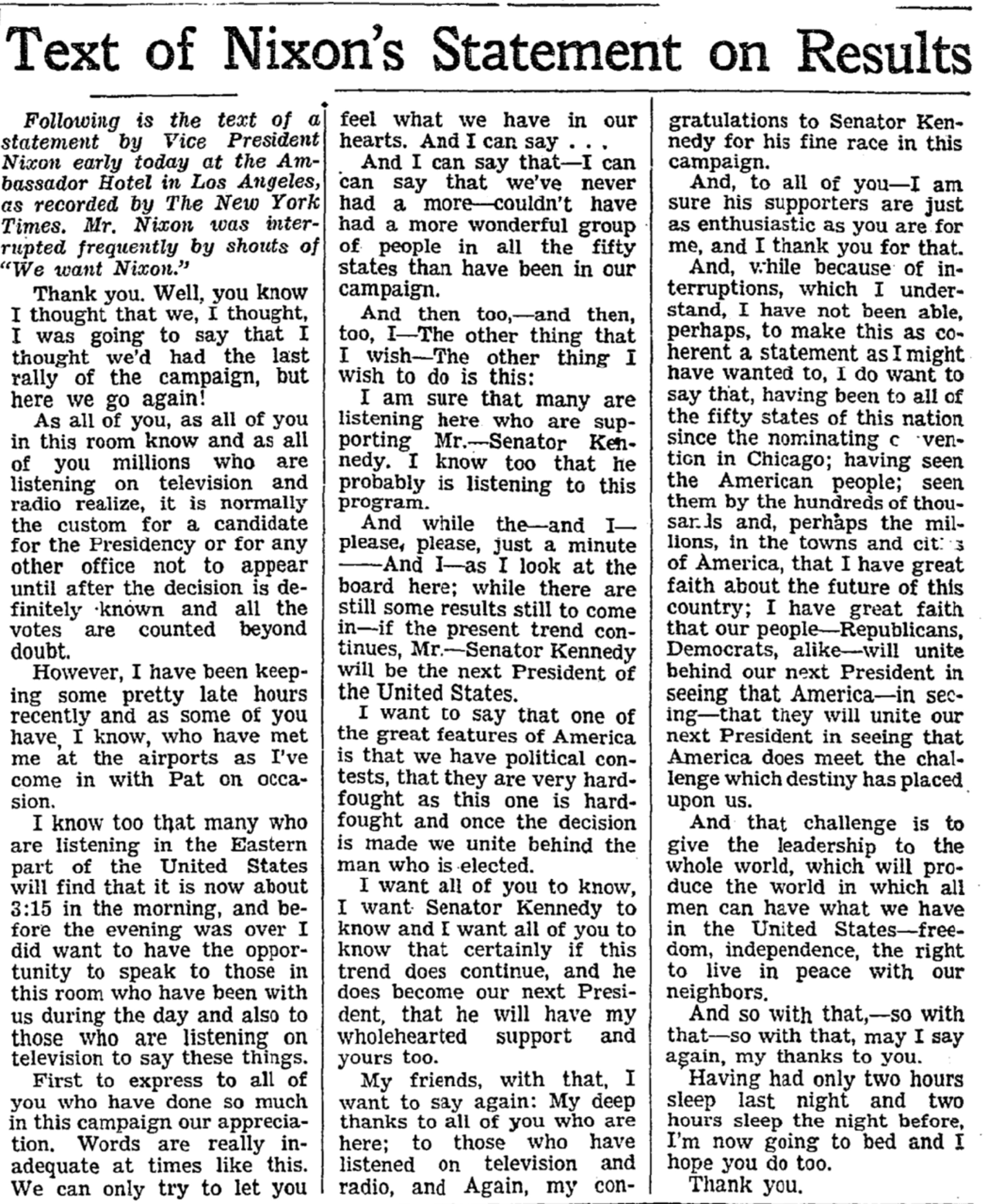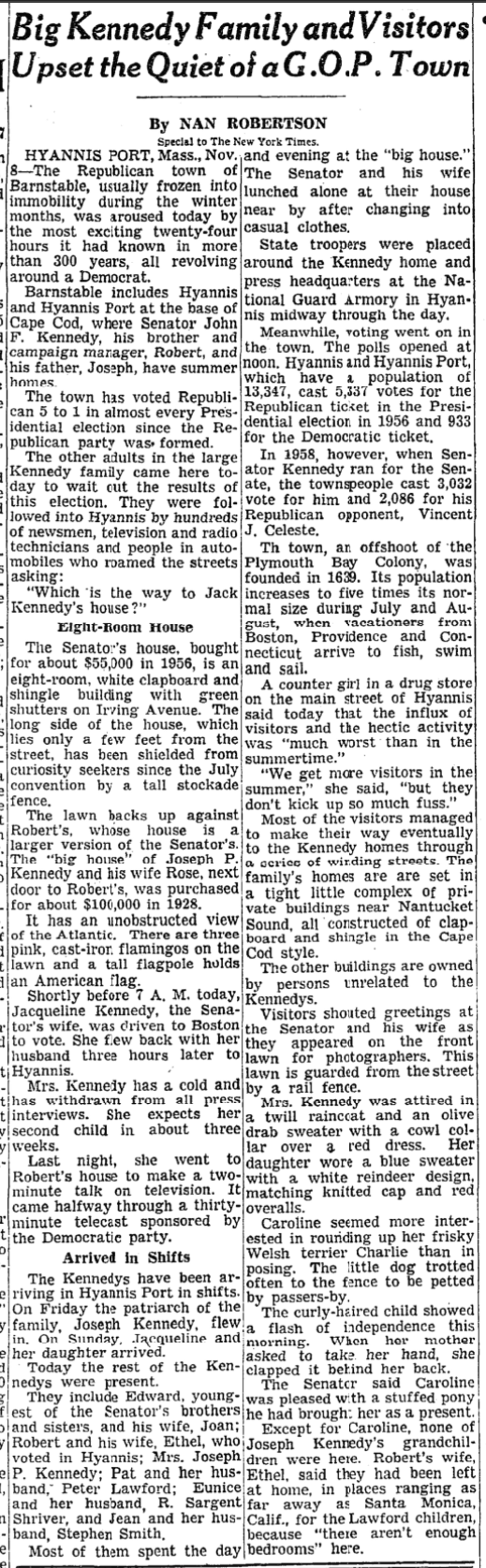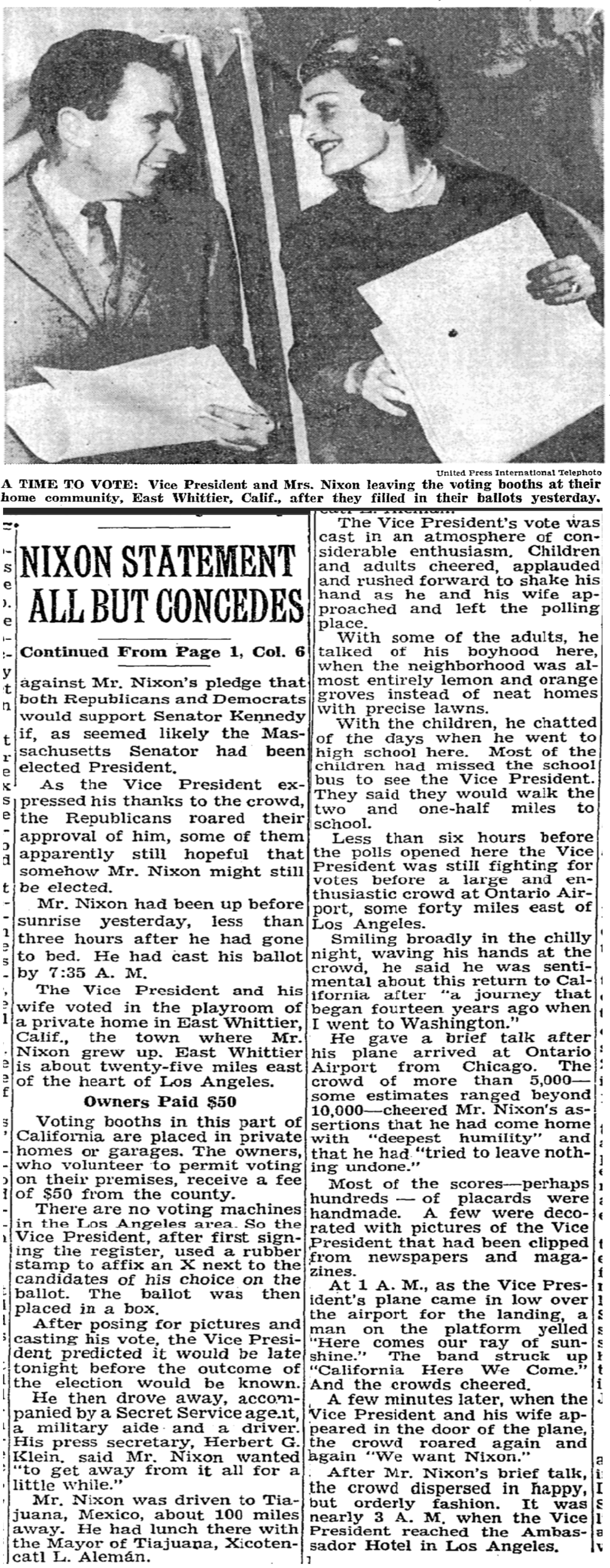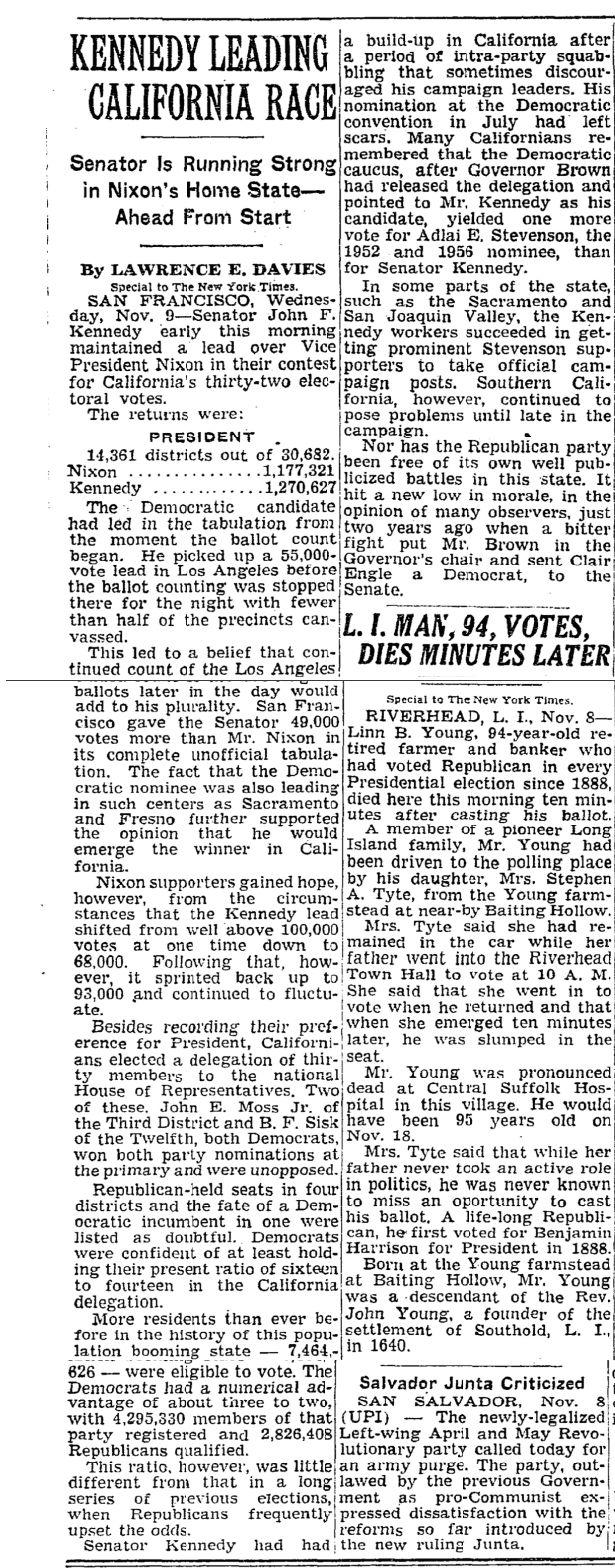 NEW YORK TIMES, dated November 9,1960 (the day after 1960 Presidential