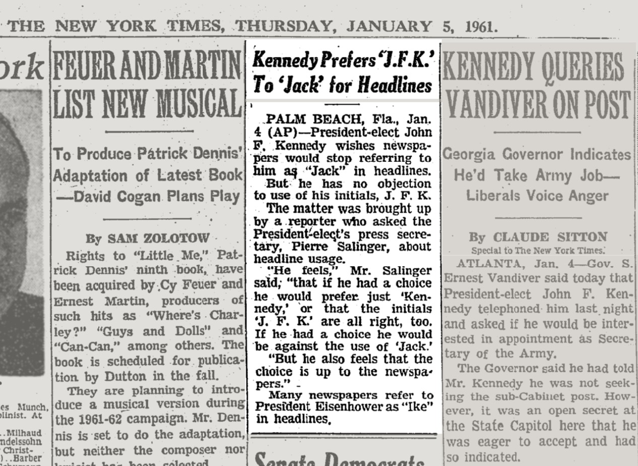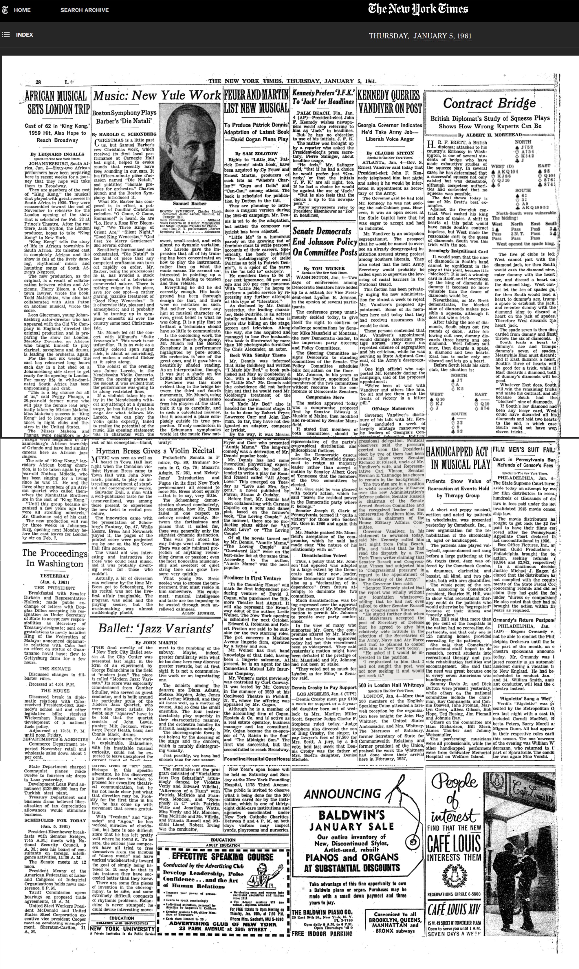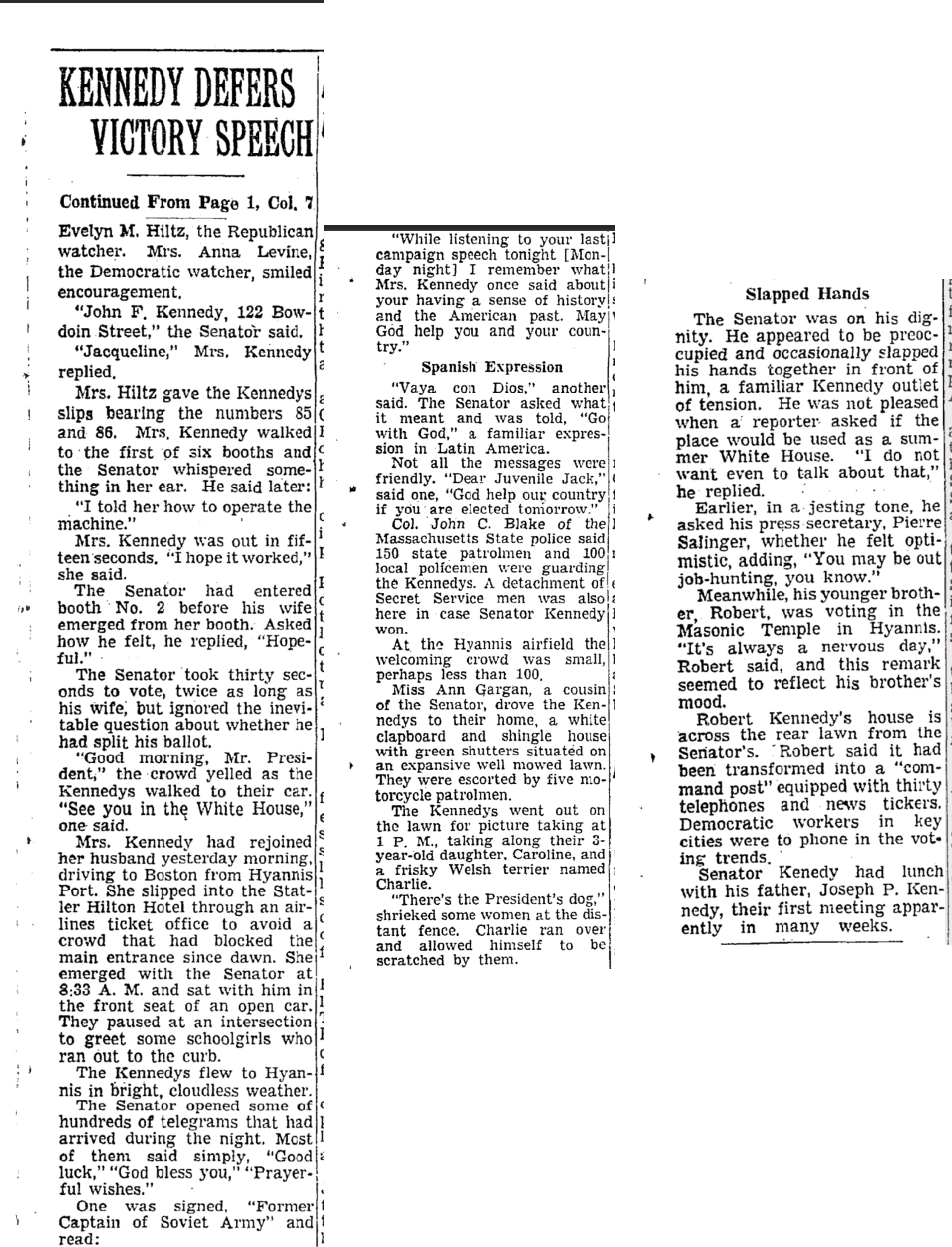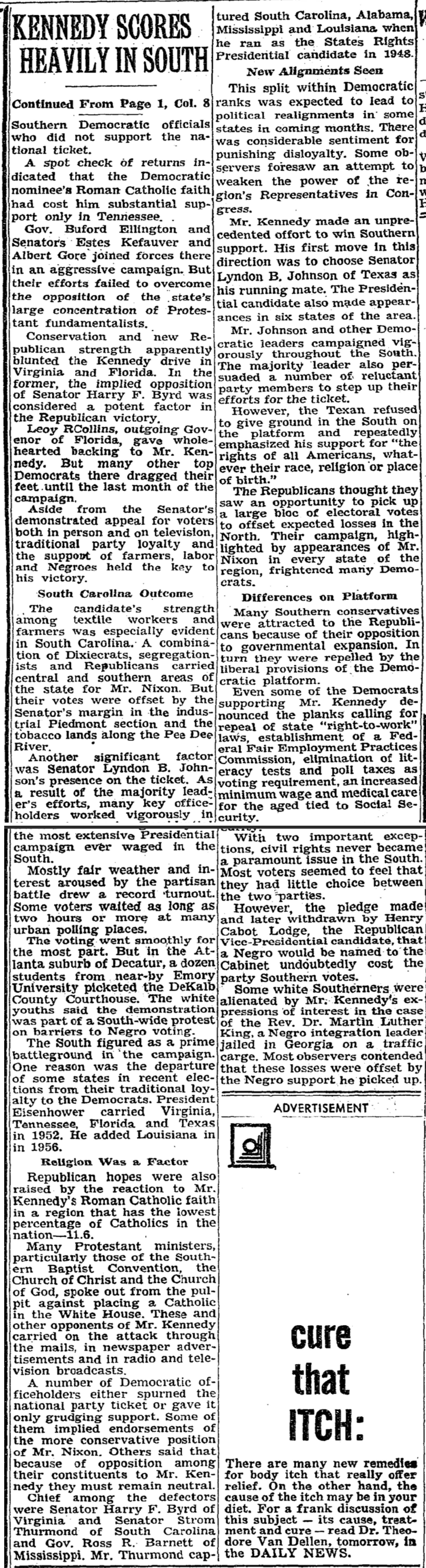 NEW YORK TIMES, dated November 9,1960 (the day after 1960 Presidential