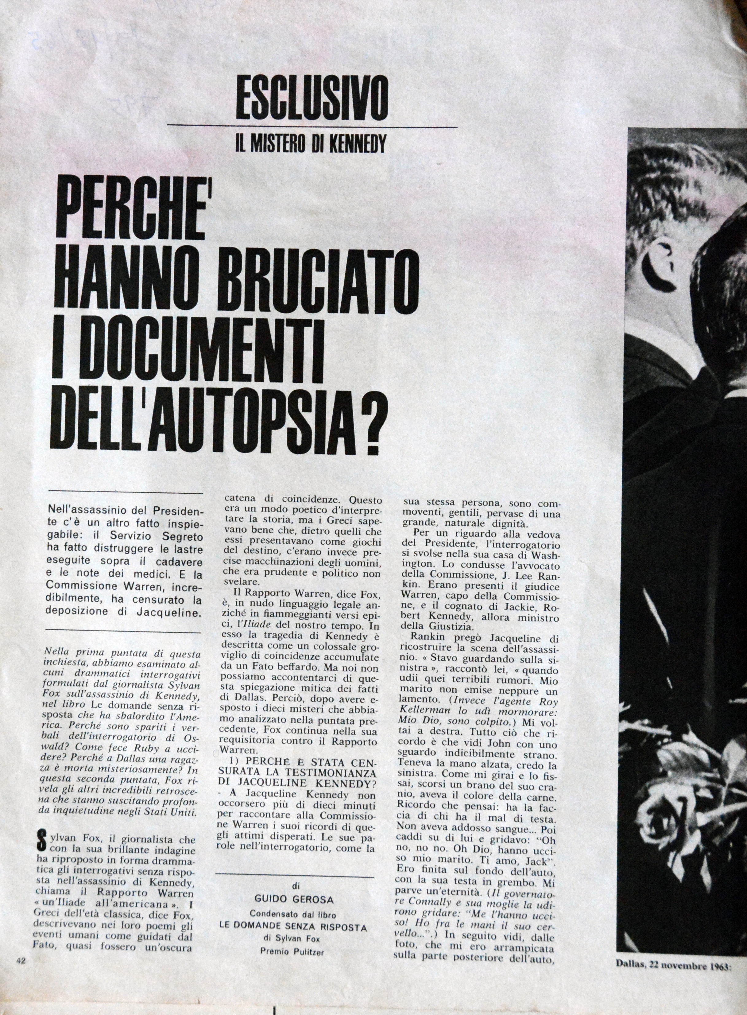 F.Kennedy, from Oriana Fallaci (3 pages). |