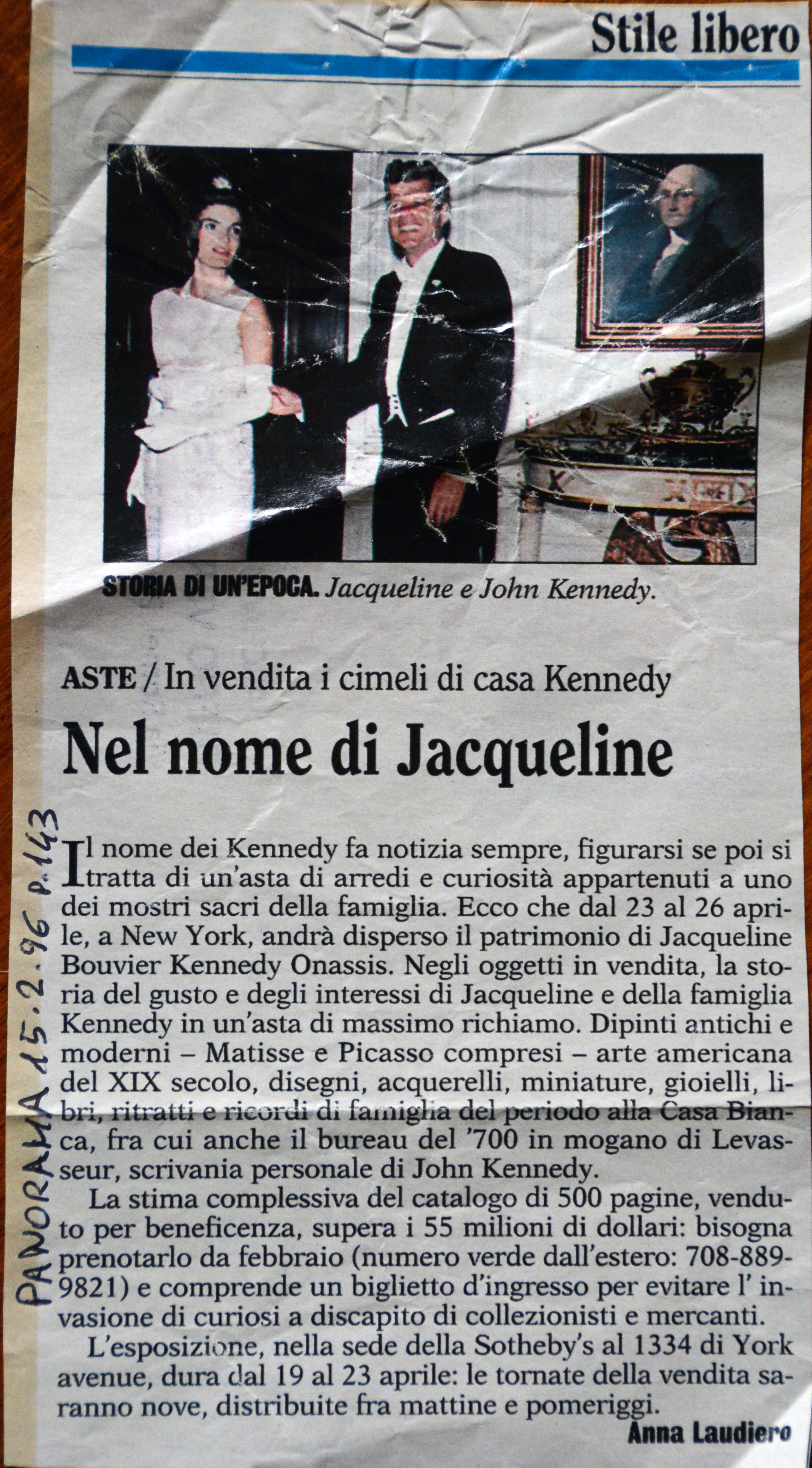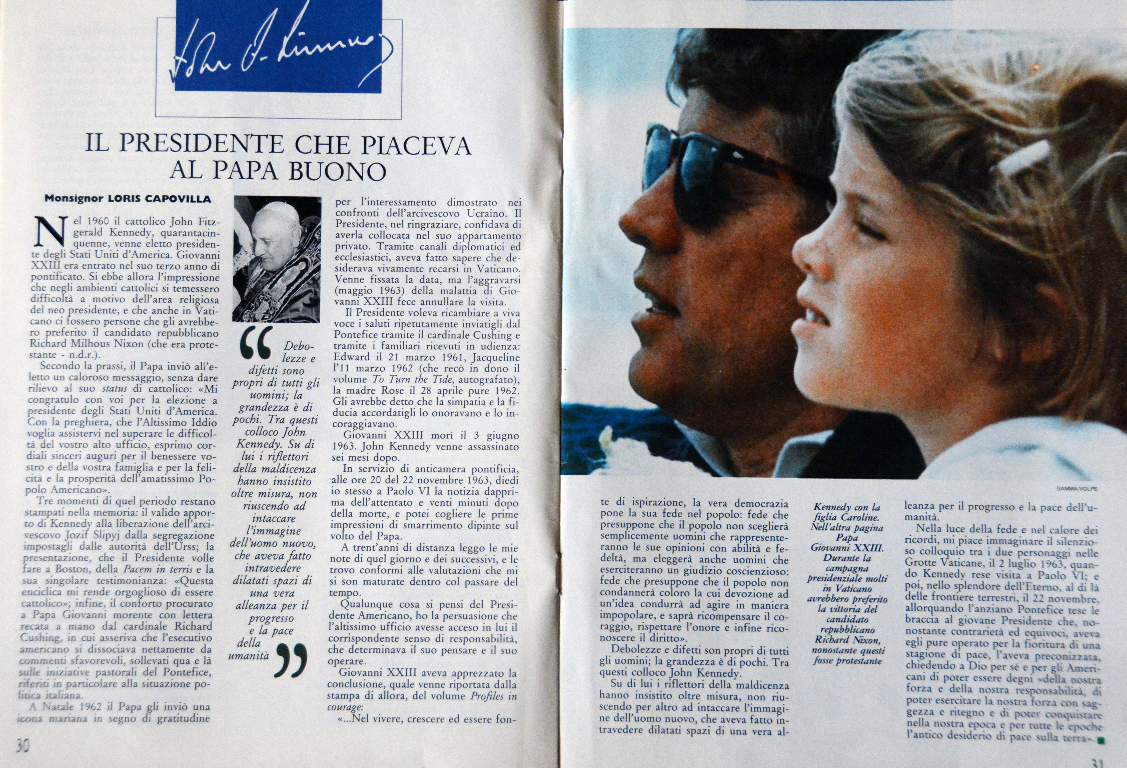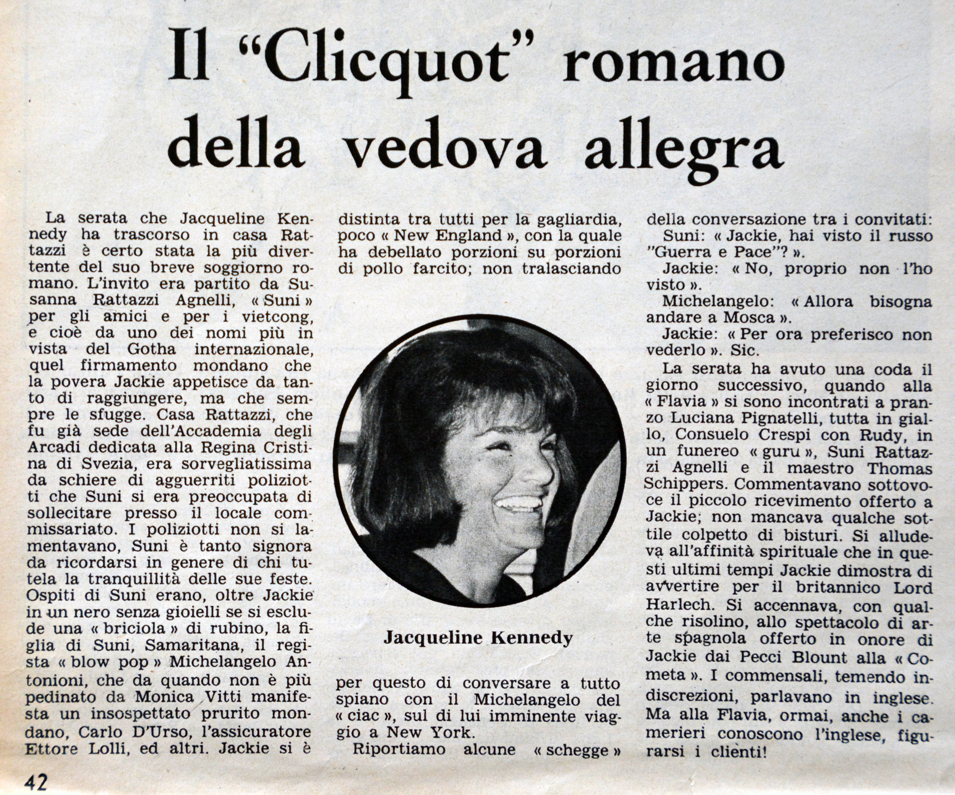 Two articles in Lo Specchio dedicated to Jacqueline Kennedy and the two