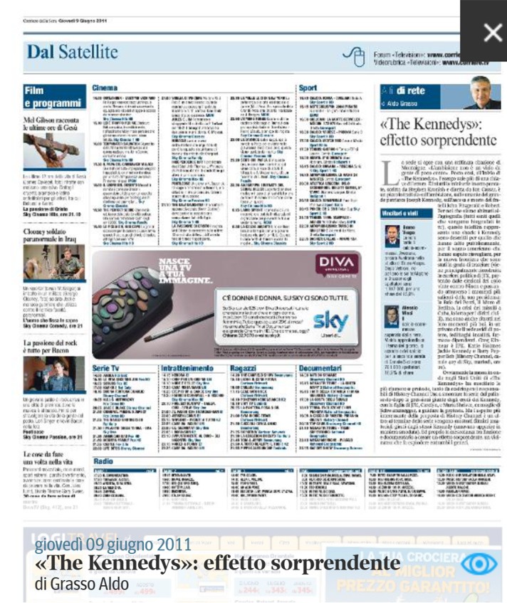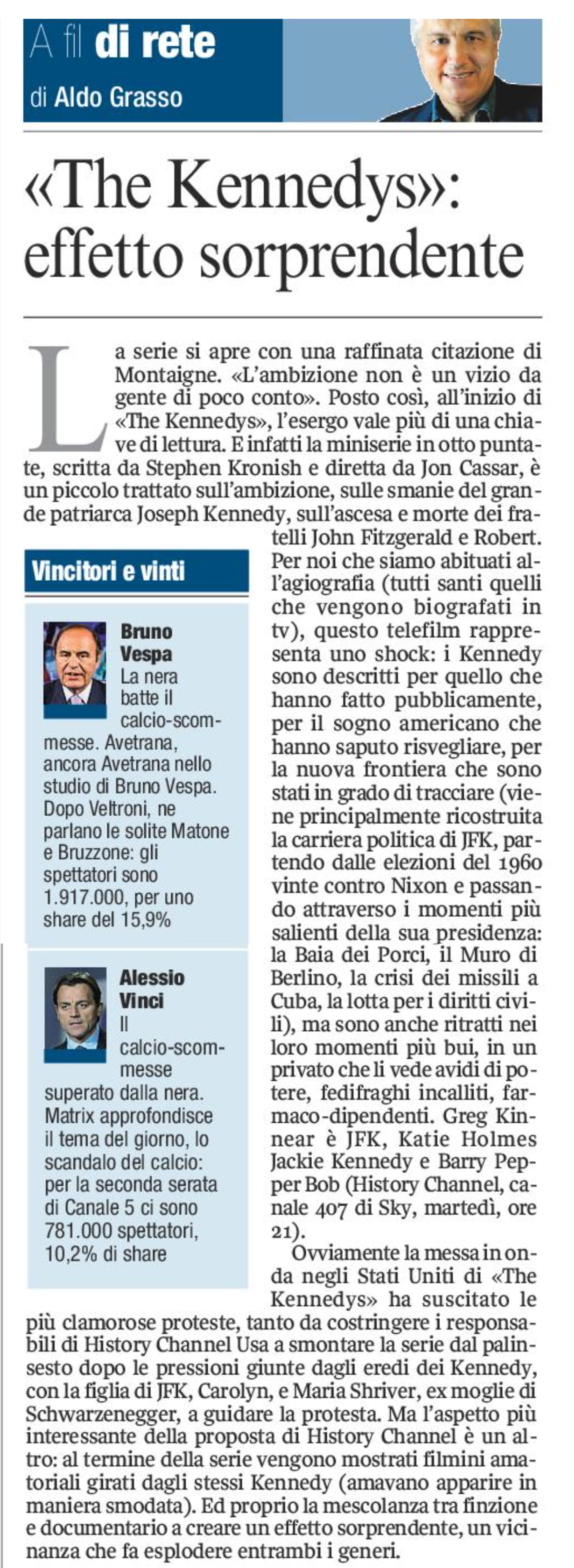 Article (by Aldo Grasso): "The Kennedys": a surprising effect."