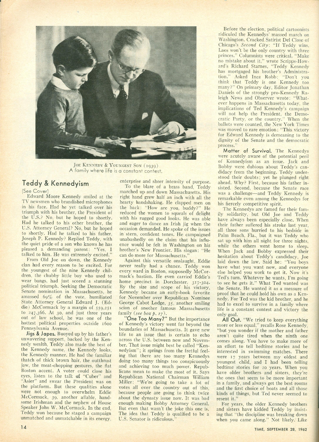 Cover Story Article "Teddy and Kennedyism".
