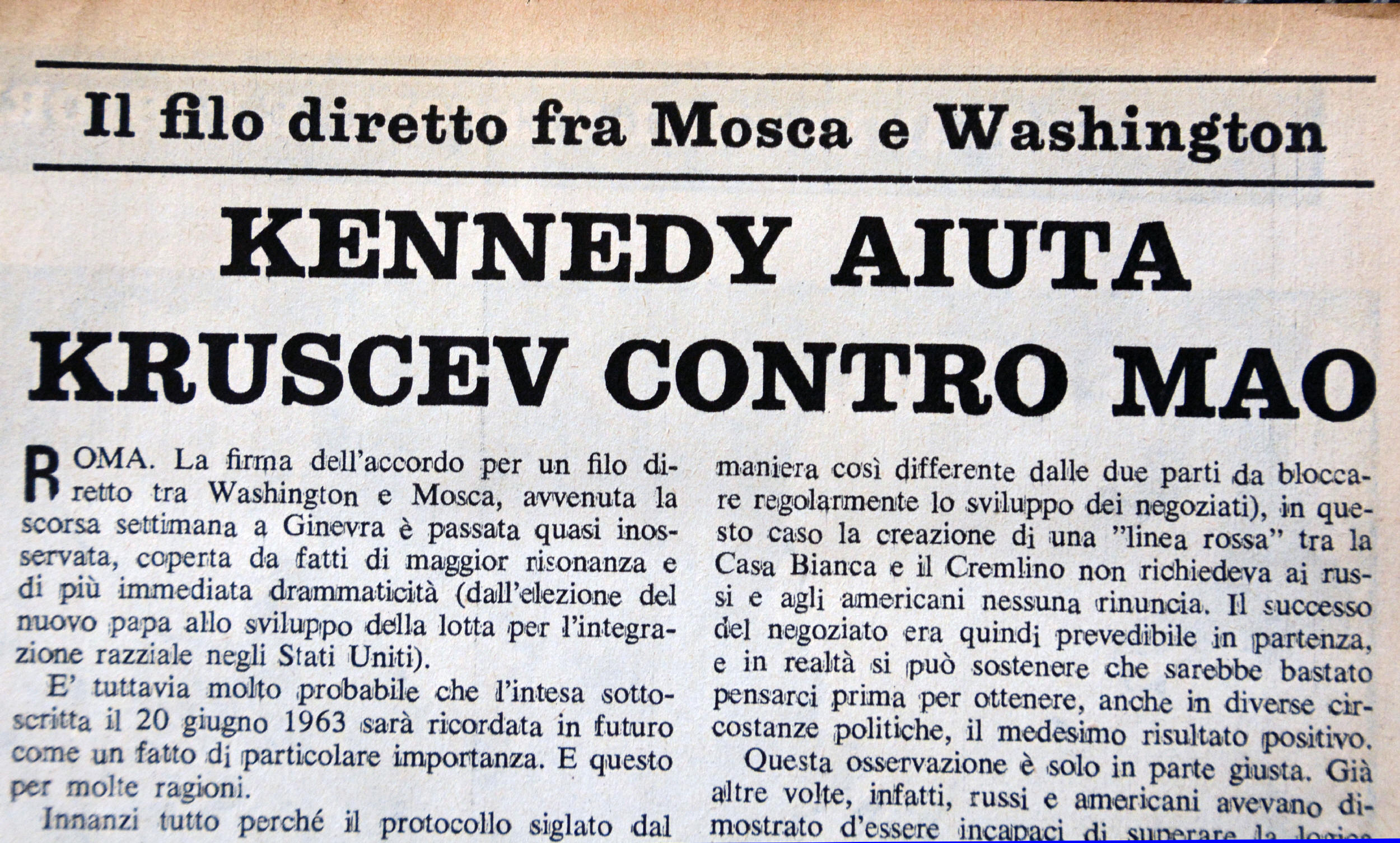 Article from Antonio Gambino "Kennedy aiuta Kruscev contro