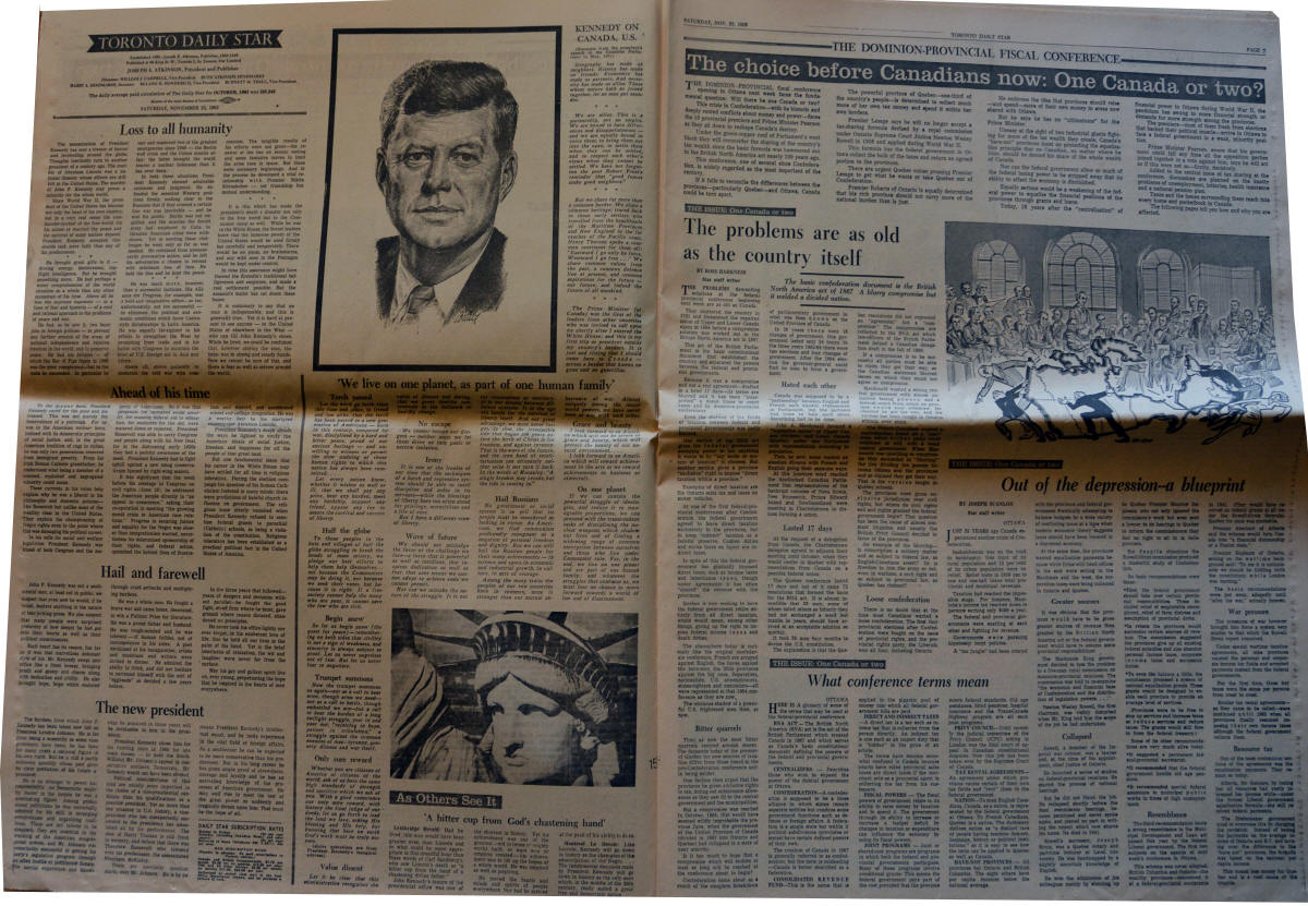 Three pages articles in the fourth anniversary of JFK Assassination: