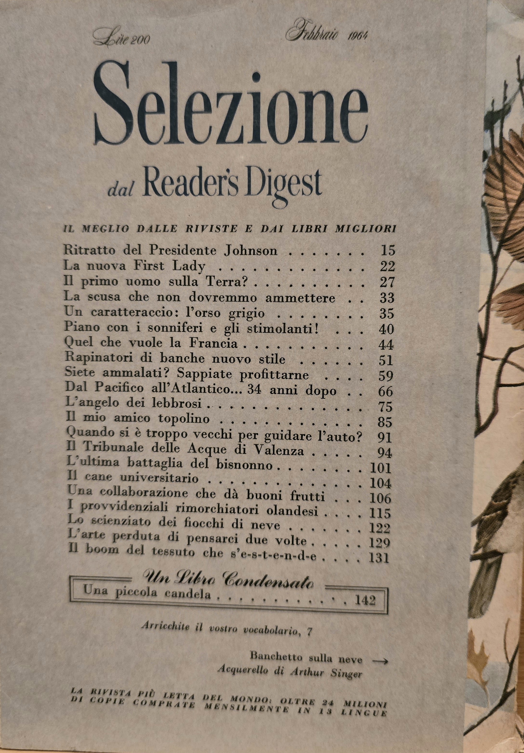 Original. Article from Italian magazine LO SPECCHIO (Nov.5,1967).