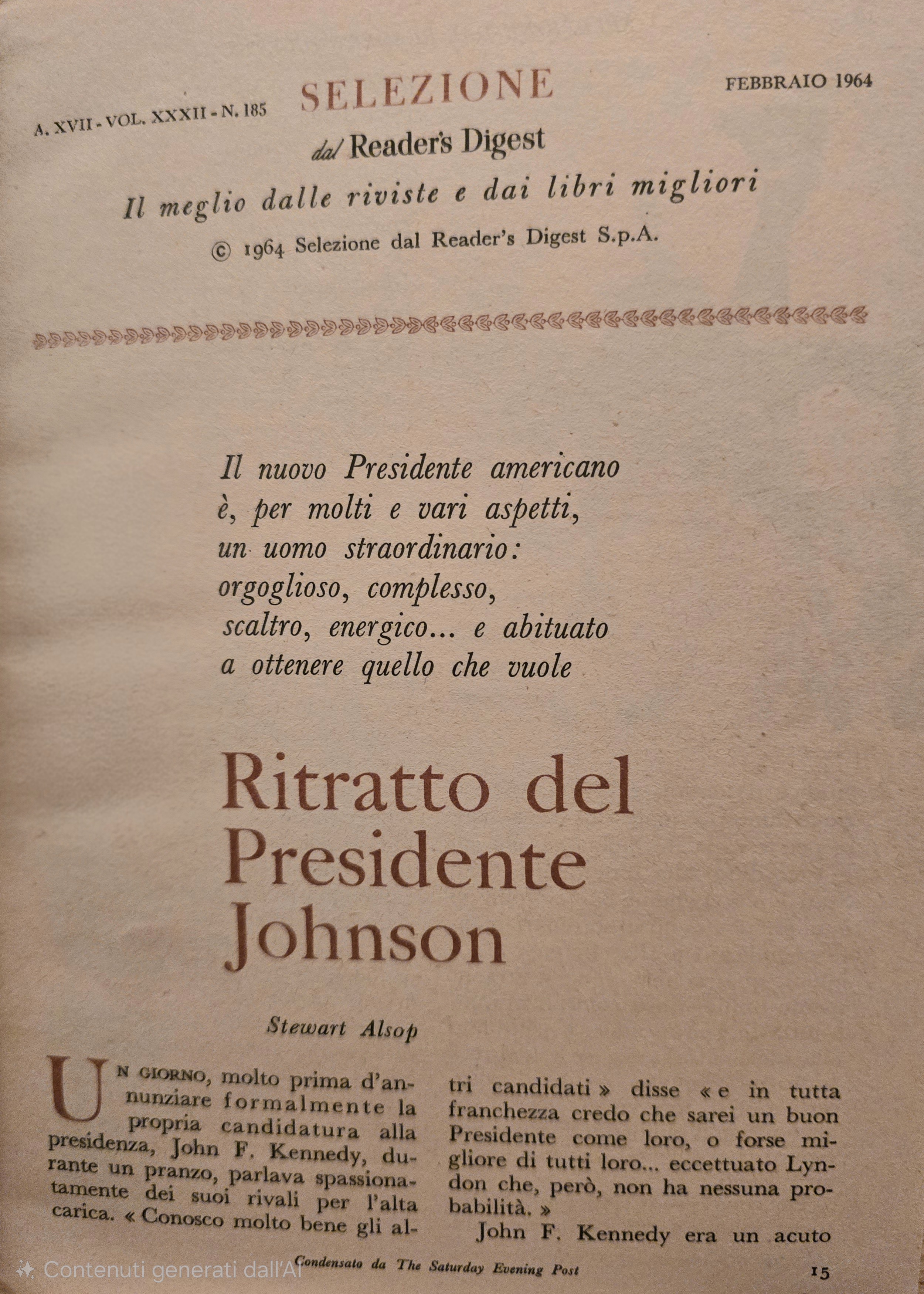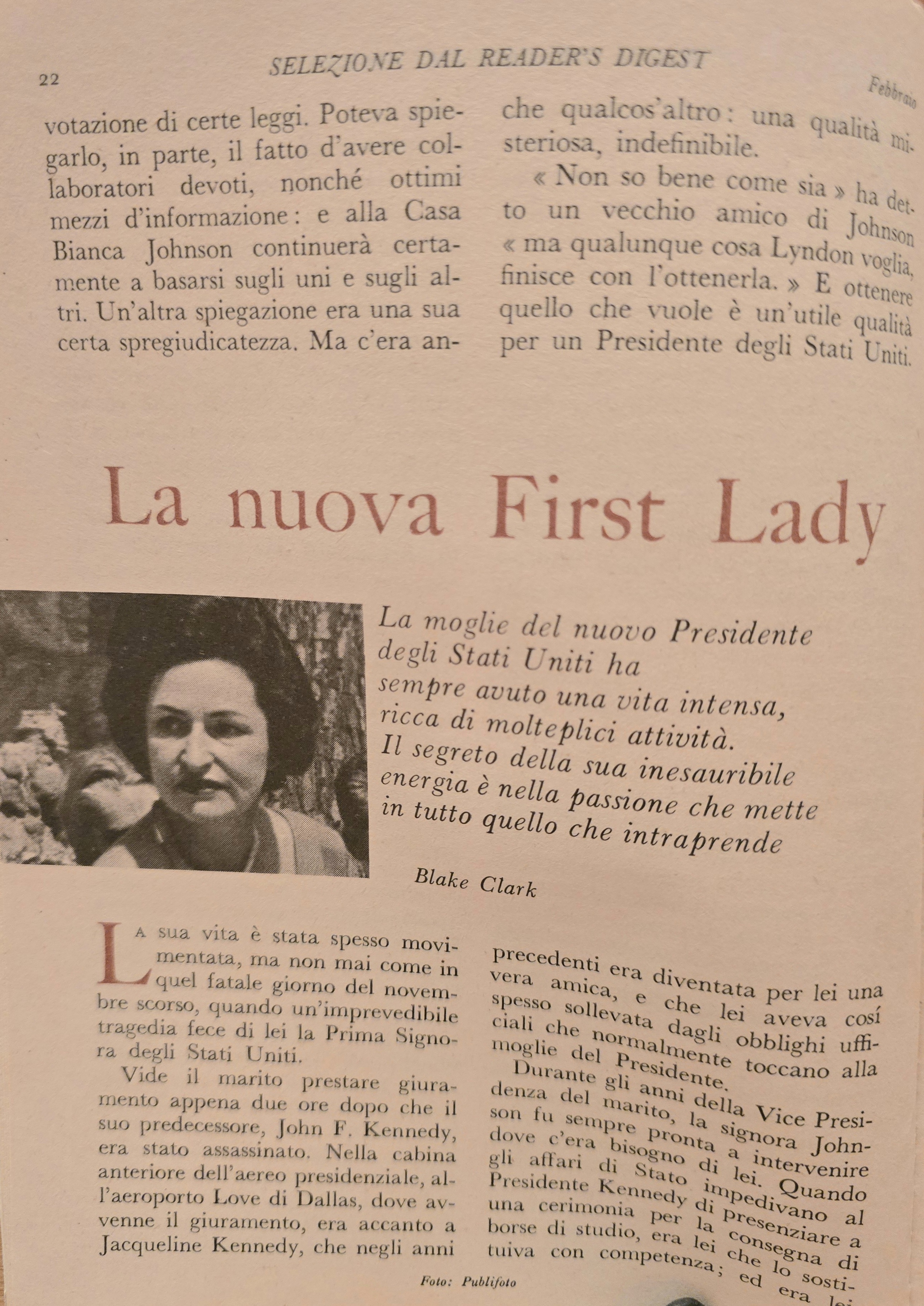 In the cover page, a photo of Lyndon Johnson and his wife with Jacqueline
