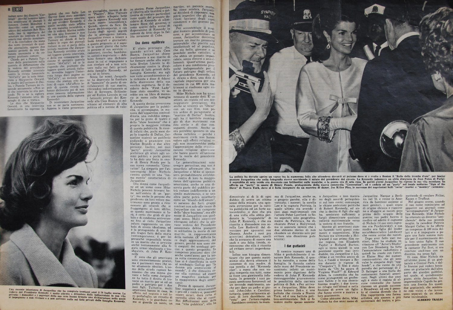 4-page article by Alberto Traldi : "Will Jacqueline Kennedy marry a cinema