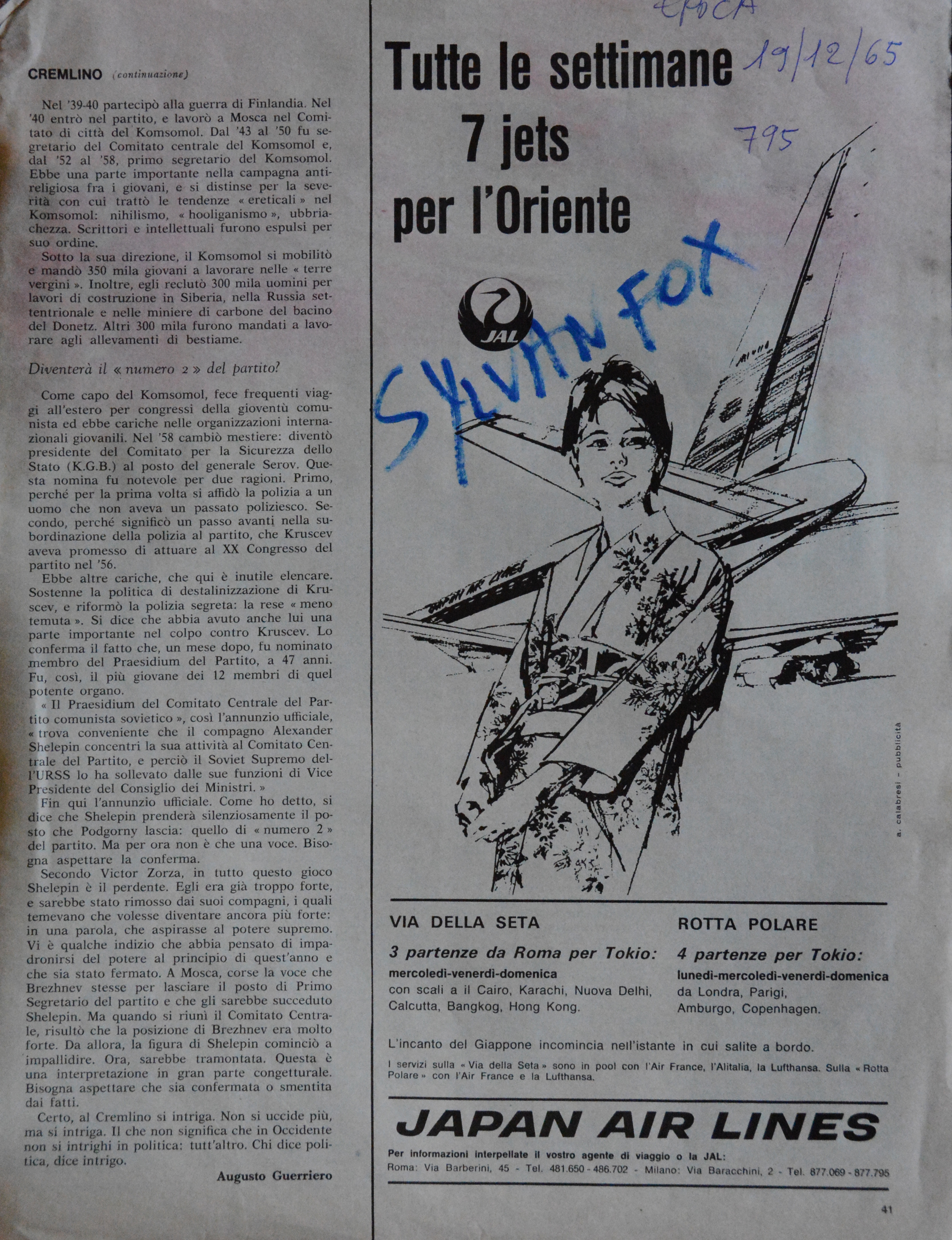 Article by Guido Gerosa, from the Italian weekly EPOCA, December 19, 1965.