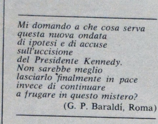 In the "Italia domanda" column, the question is asked, "Why can't Kennedy