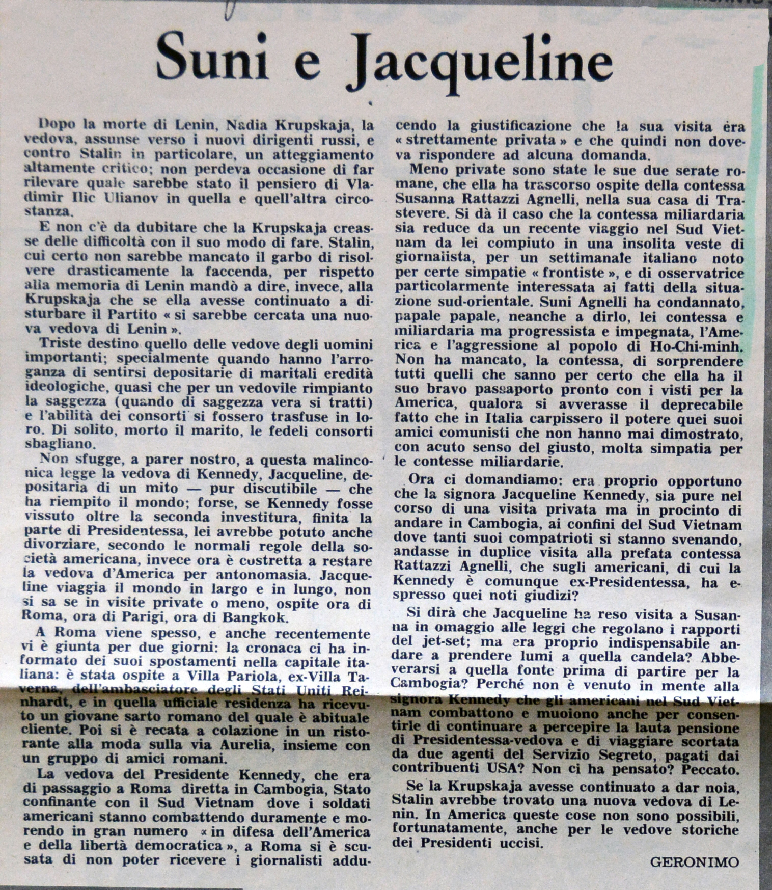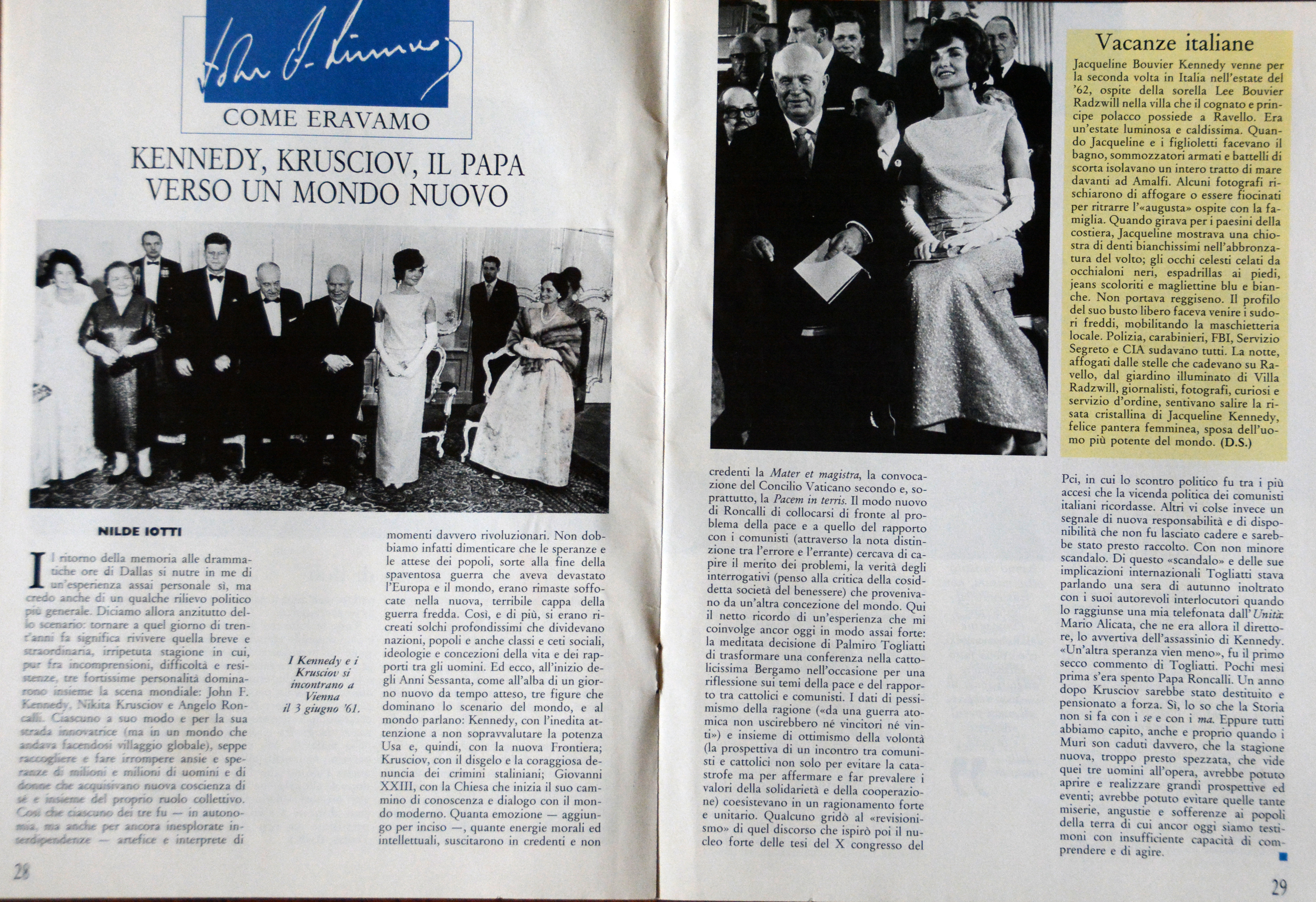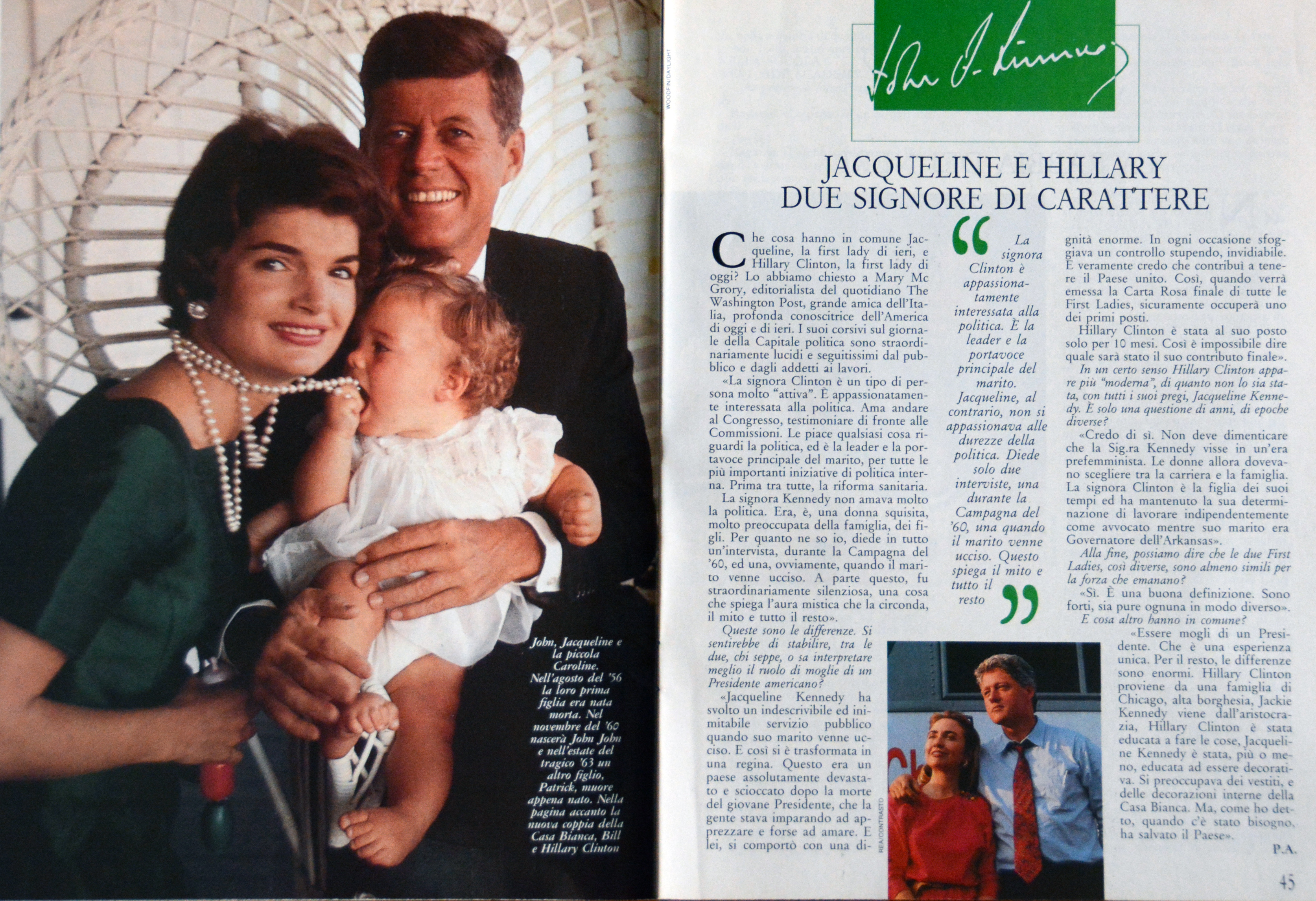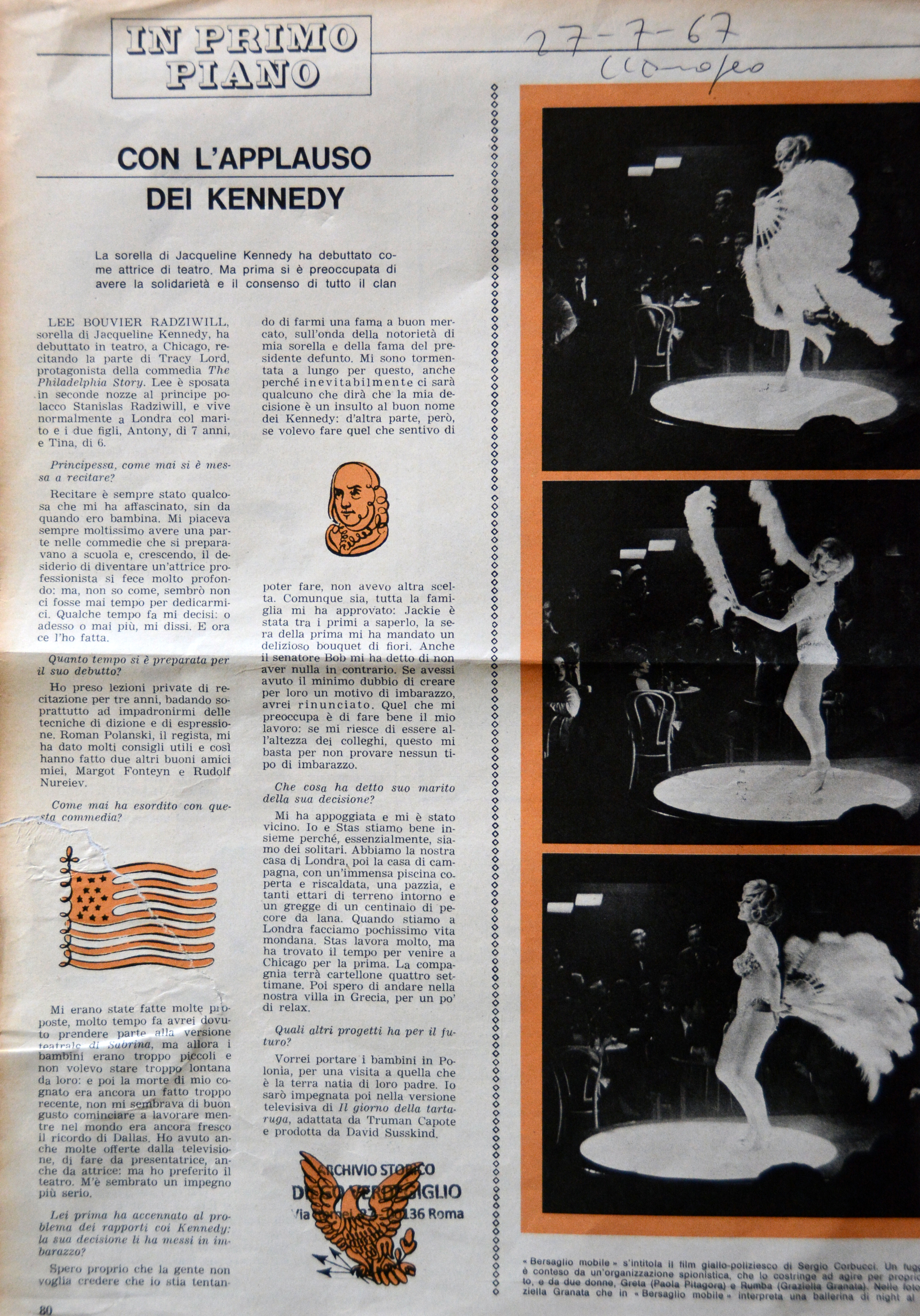 Two articles in Lo Specchio dedicated to Jacqueline Kennedy and the two