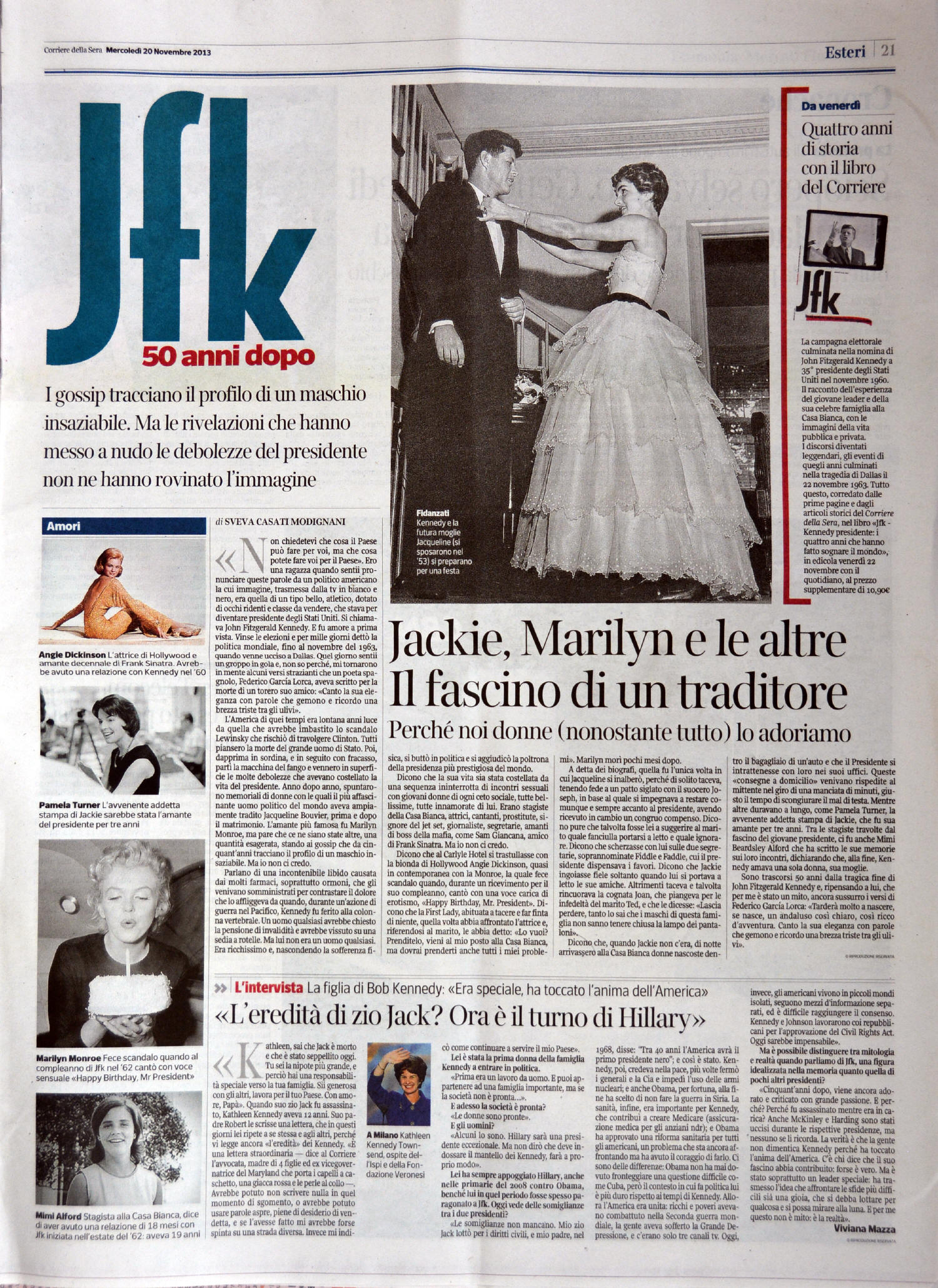 Full page dedicated to "JFK-50 yrs later", with two articles :