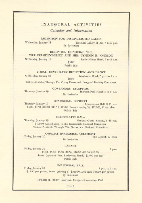 Inaugural Program of John F. Kennedy/Lyndon Johnson Inauguration, on